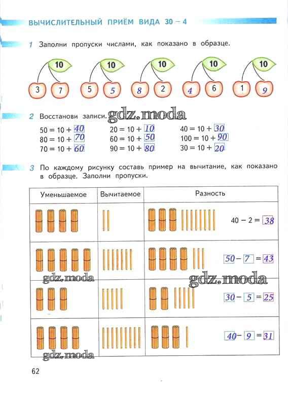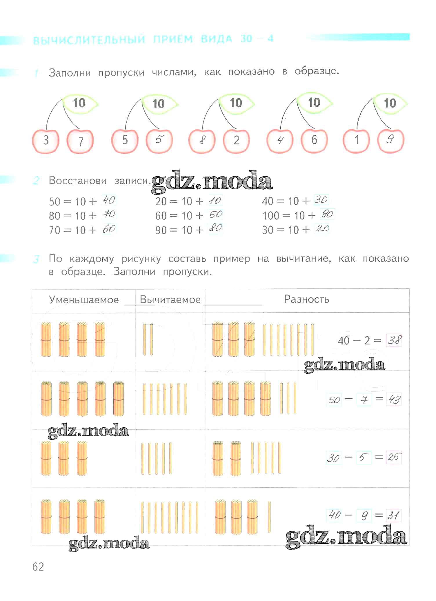 ОТВЕТ на задание № 62 Рабочая тетрадь по Математике 2 класс Дорофеев Перспектива