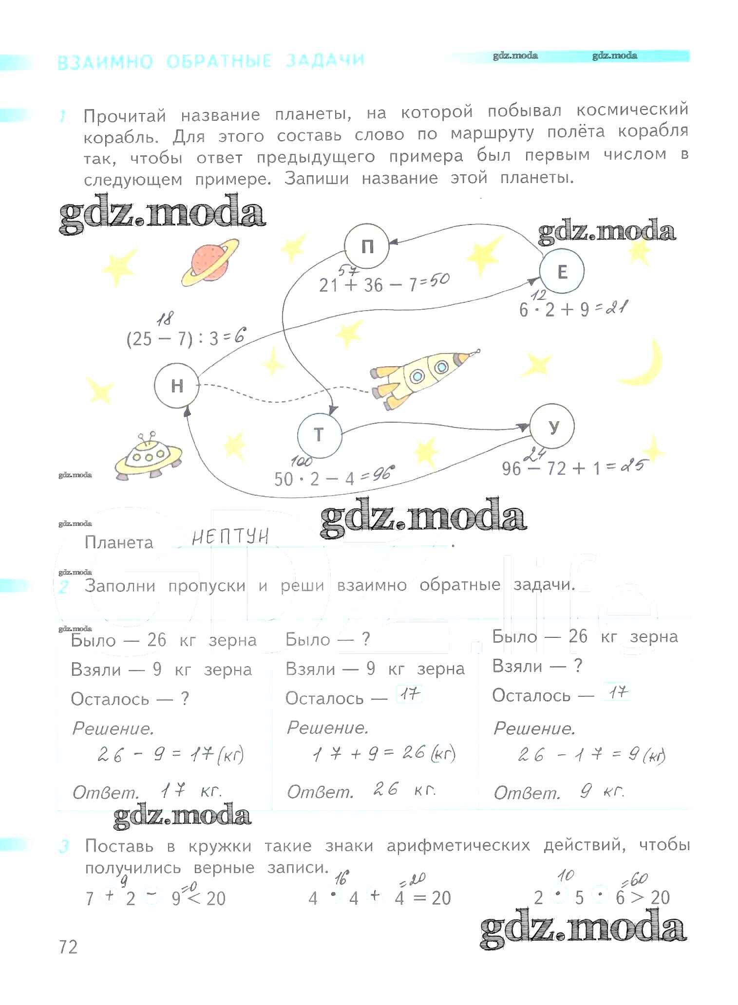ОТВЕТ на задание № 72 Рабочая тетрадь по Математике 2 класс Дорофеев Перспектива