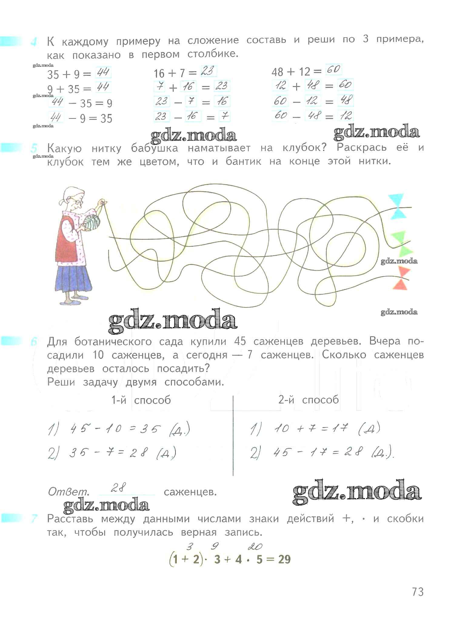 ОТВЕТ на задание № 73 Рабочая тетрадь по Математике 2 класс Дорофеев Перспектива