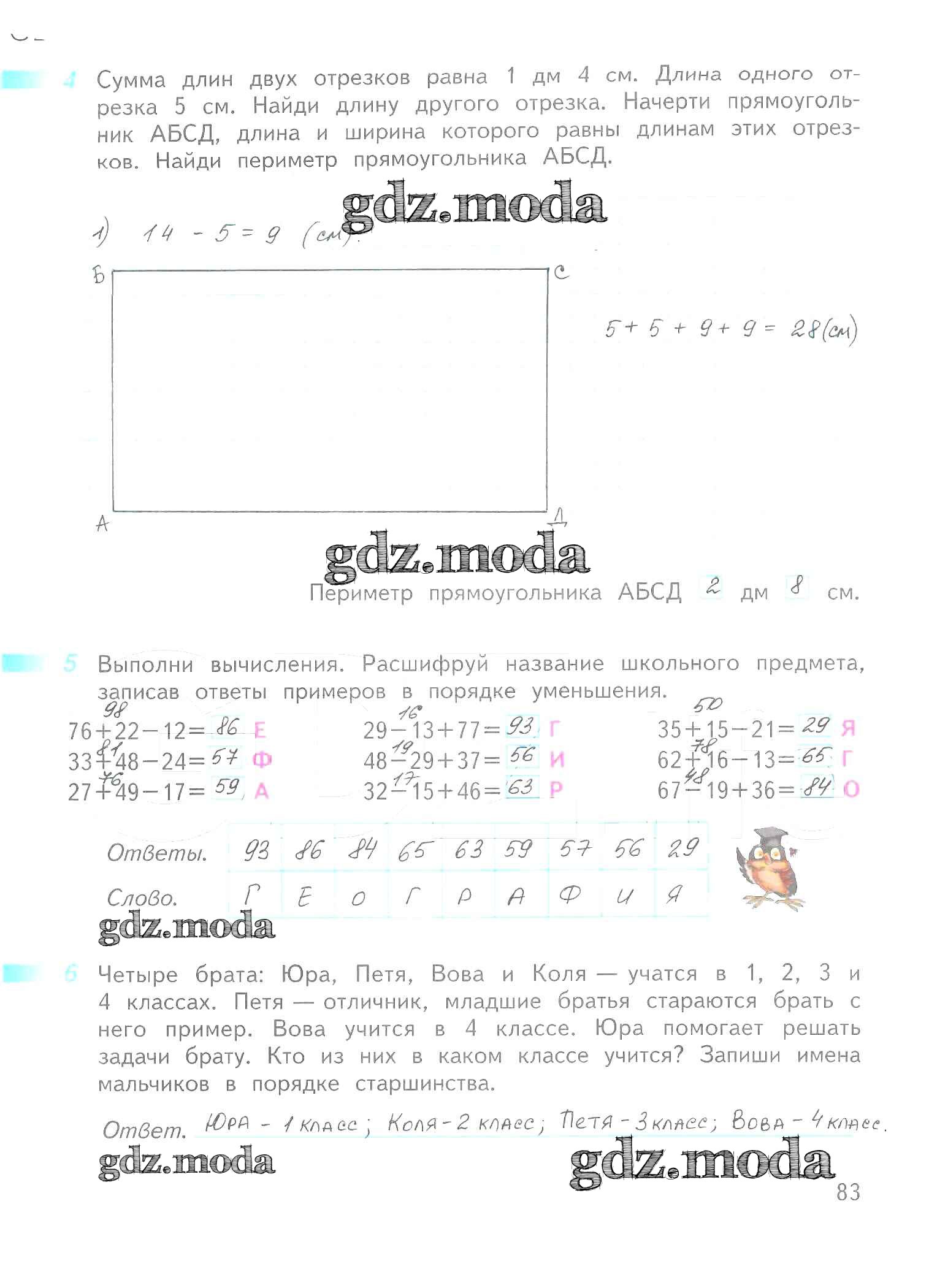 ОТВЕТ на задание № 83 Рабочая тетрадь по Математике 2 класс Дорофеев Перспектива
