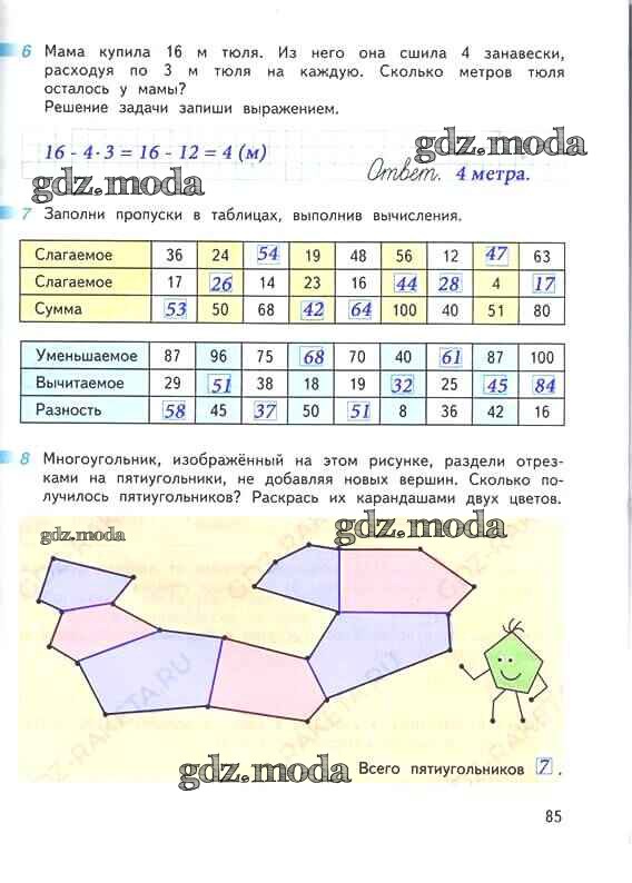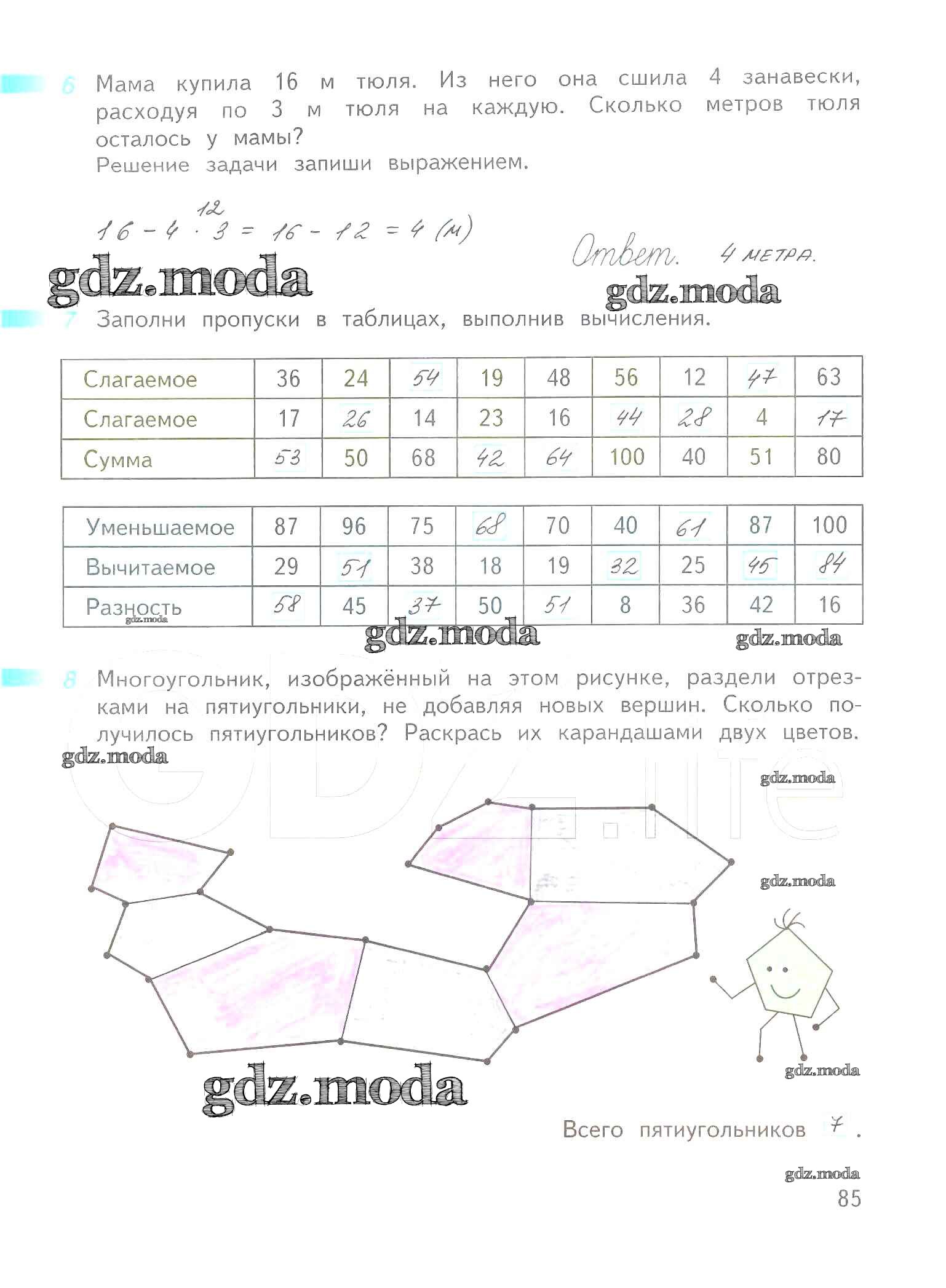 ОТВЕТ на задание № 85 Рабочая тетрадь по Математике 2 класс Дорофеев Перспектива