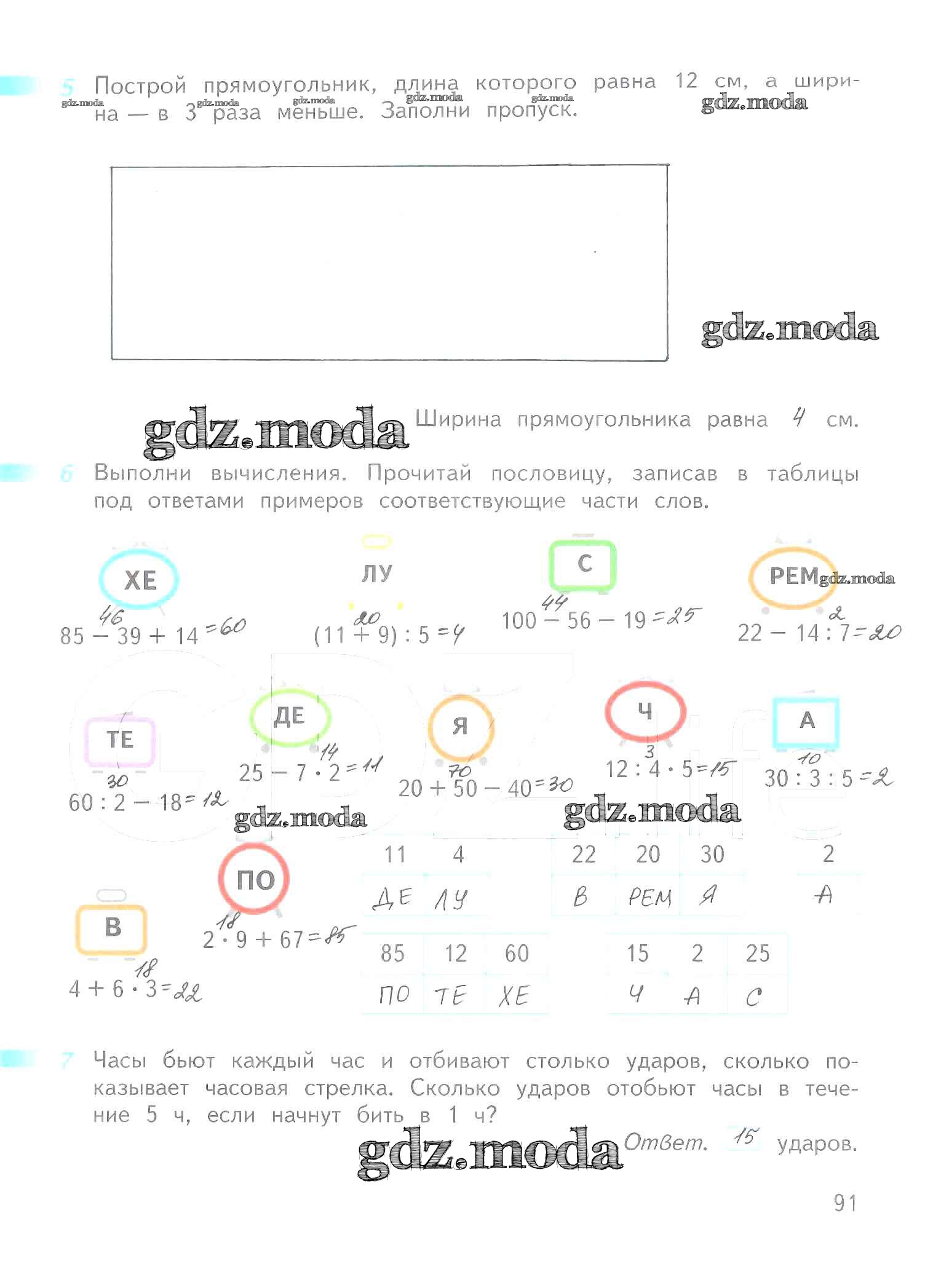 ОТВЕТ на задание № 91 Рабочая тетрадь по Математике 2 класс Дорофеев Перспектива