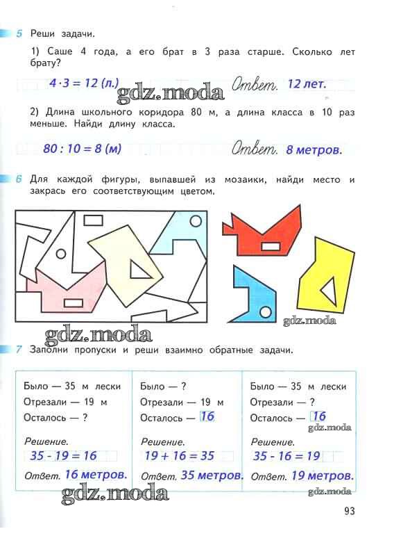 ОТВЕТ на задание № 93 Рабочая тетрадь по Математике 2 класс Дорофеев Перспектива