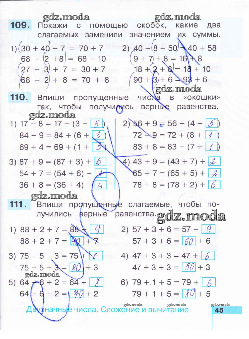ОТВЕТ на задание № 45 Рабочая тетрадь по Математике 2 класс Истомина