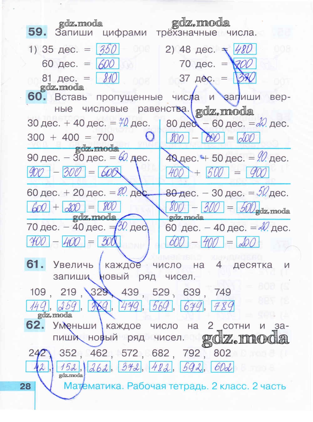 ОТВЕТ на задание № 28 Рабочая тетрадь по Математике 2 класс Истомина