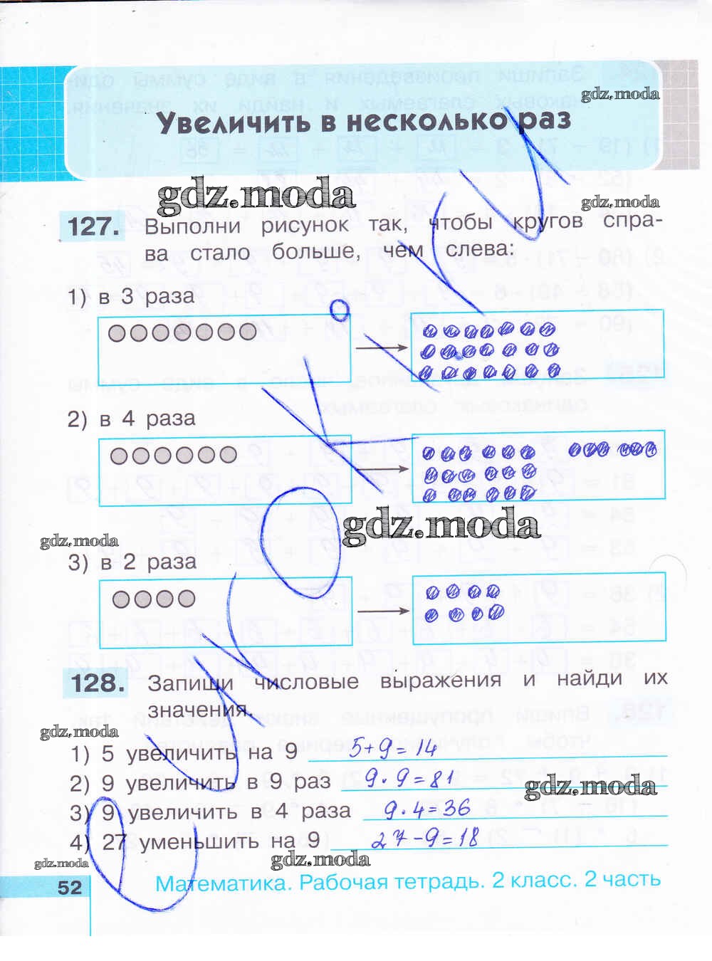 ОТВЕТ на задание № 52 Рабочая тетрадь по Математике 2 класс Истомина