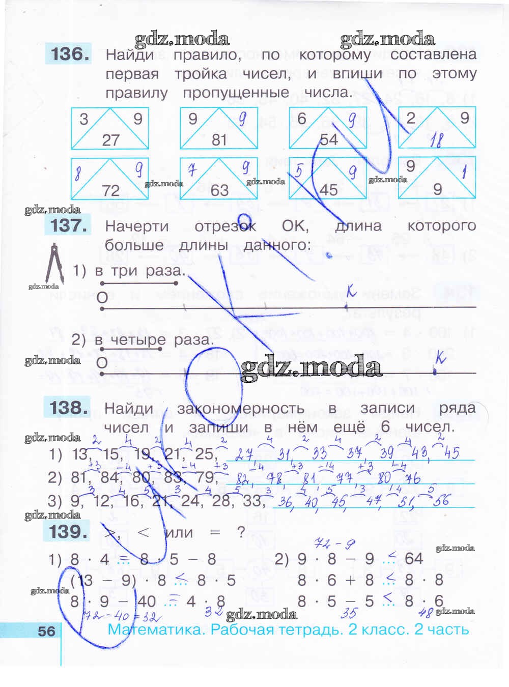 ОТВЕТ на задание № 56 Рабочая тетрадь по Математике 2 класс Истомина