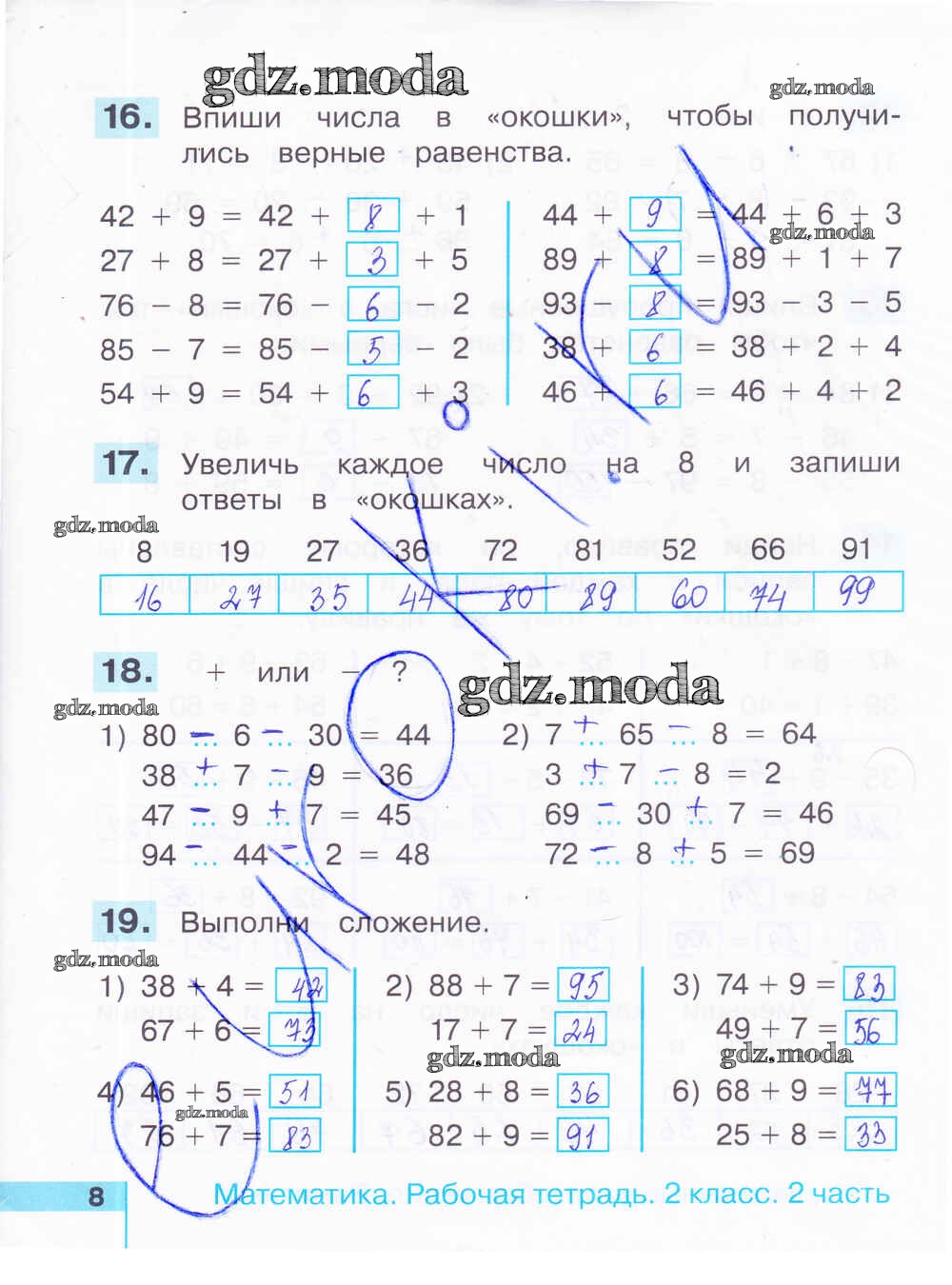 ОТВЕТ на задание № 8 Рабочая тетрадь по Математике 2 класс Истомина