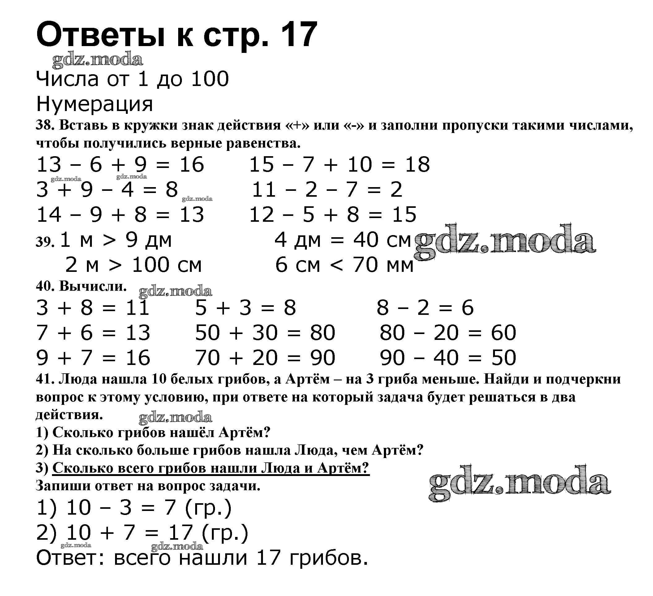 ОТВЕТ на задание № 17 Рабочая тетрадь по Математике 2 класс Волкова Школа России
