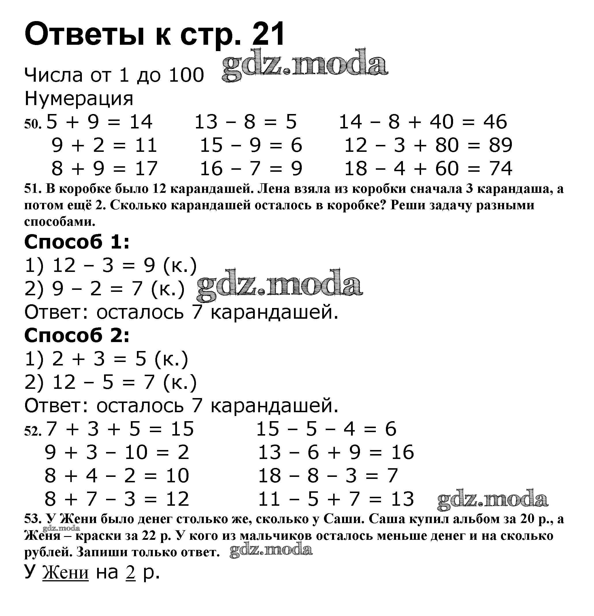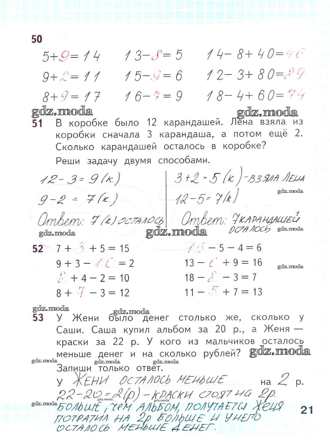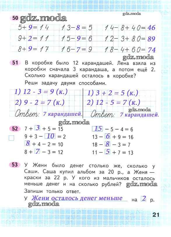 ОТВЕТ на задание № 21 Рабочая тетрадь по Математике 2 класс Волкова Школа России