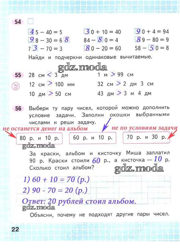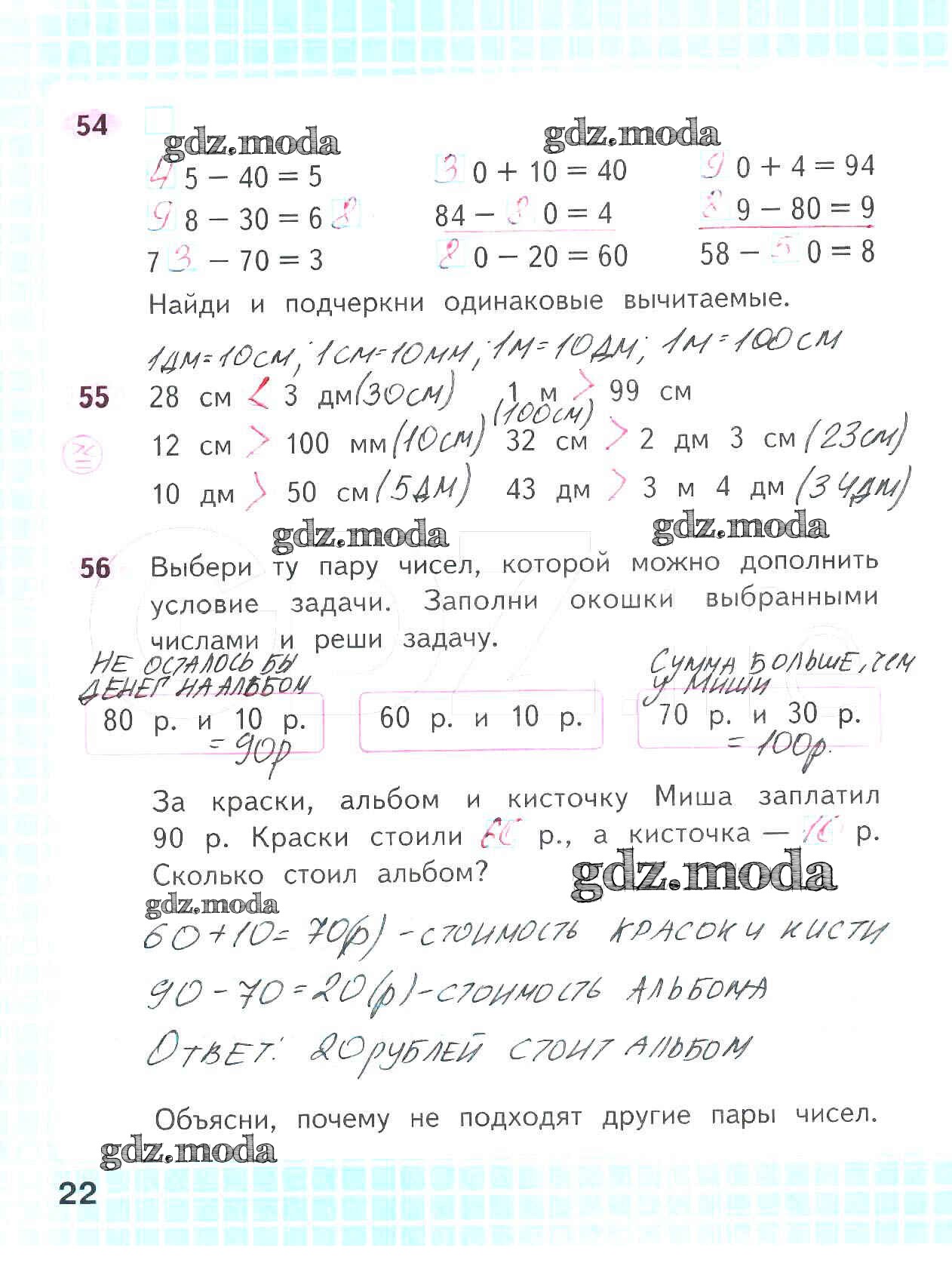 ОТВЕТ на задание № 22 Рабочая тетрадь по Математике 2 класс Волкова Школа России