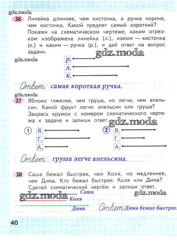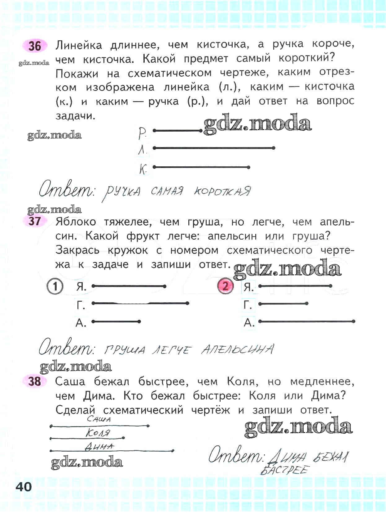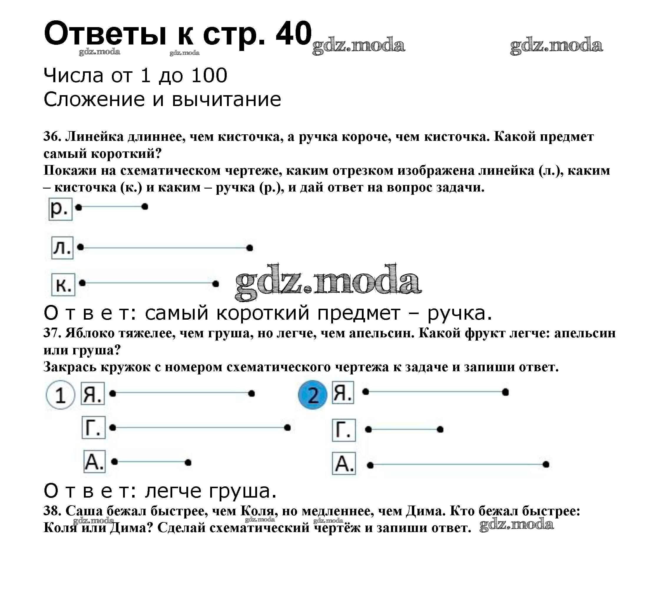 ОТВЕТ на задание № 40 Рабочая тетрадь по Математике 2 класс Волкова Школа России