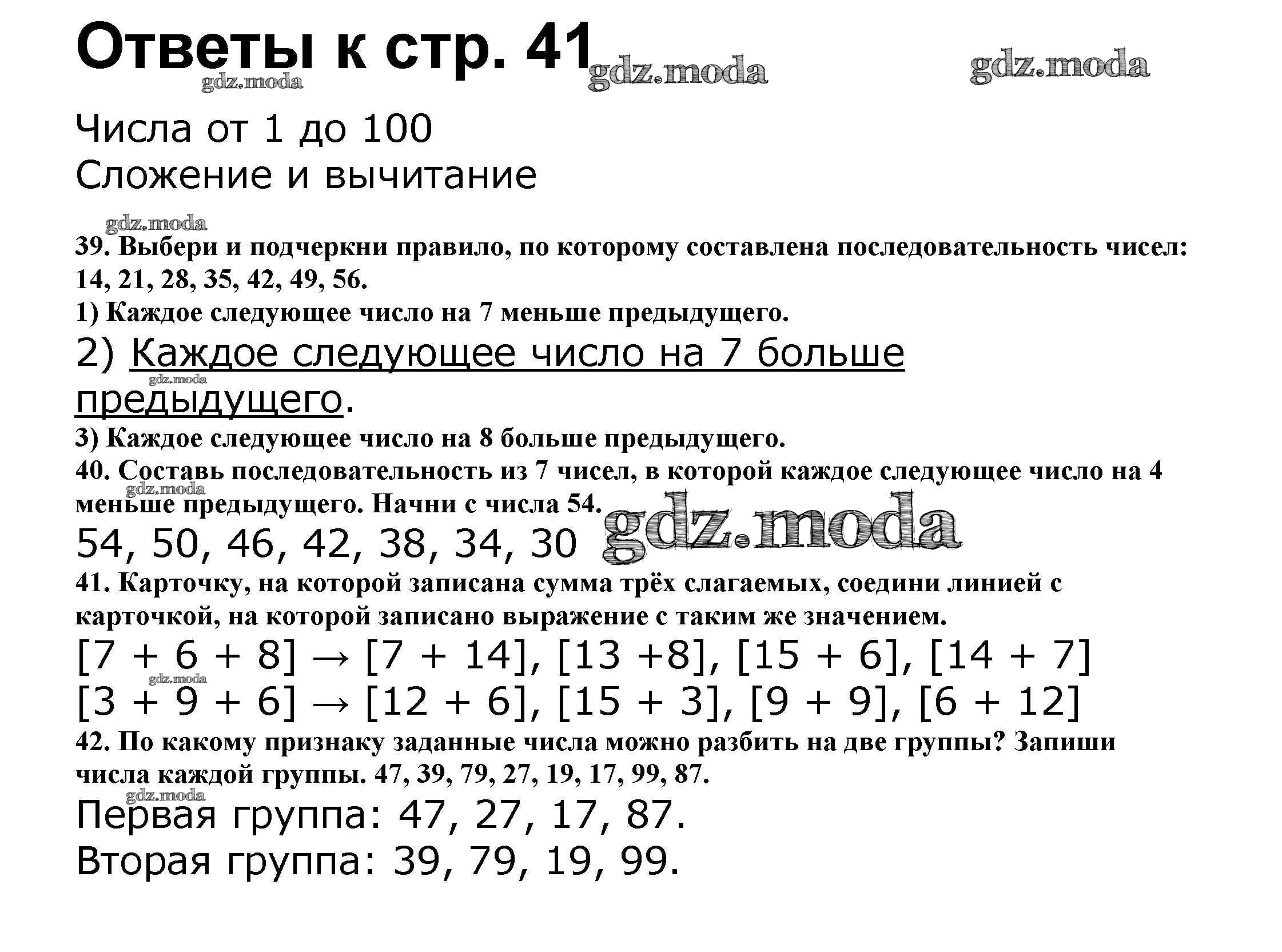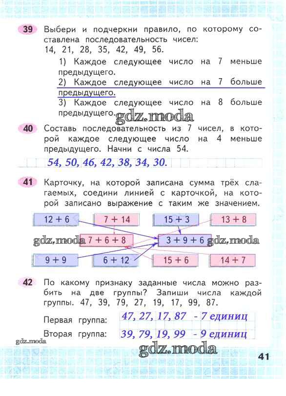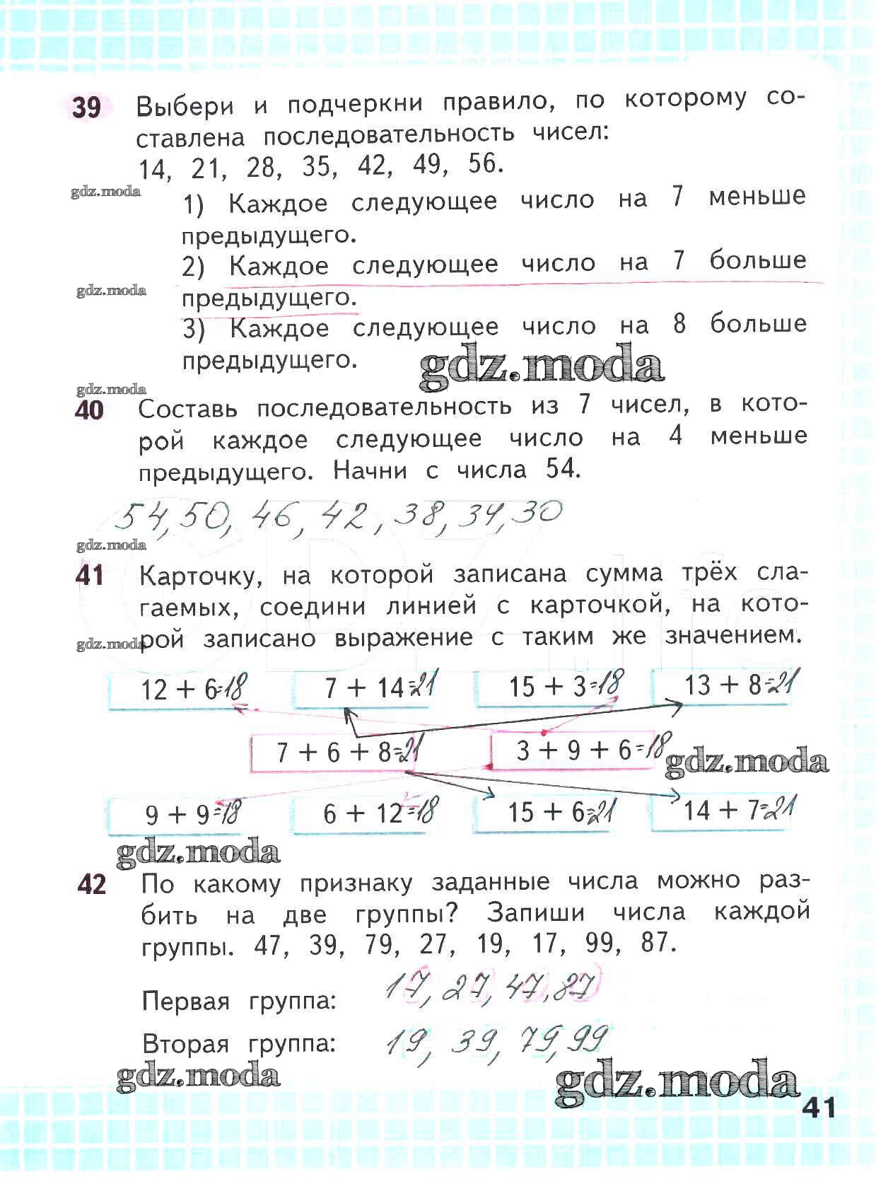 ОТВЕТ на задание № 41 Рабочая тетрадь по Математике 2 класс Волкова Школа России
