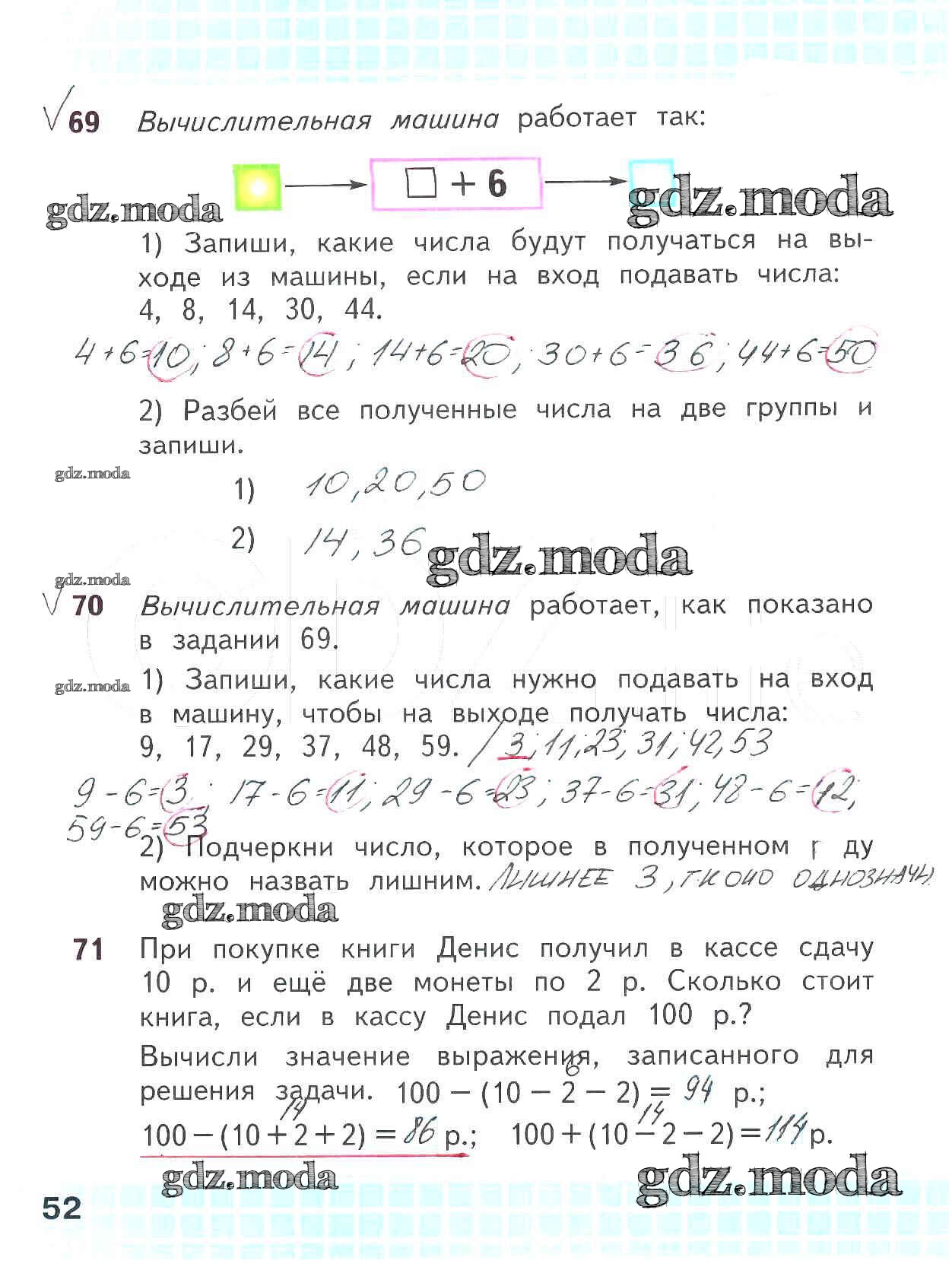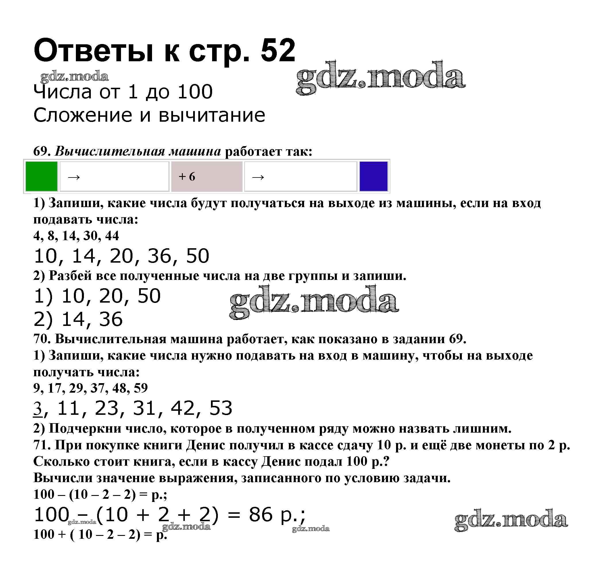 ОТВЕТ на задание № 52 Рабочая тетрадь по Математике 2 класс Волкова Школа России