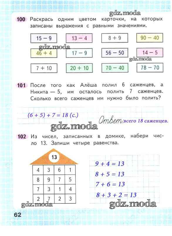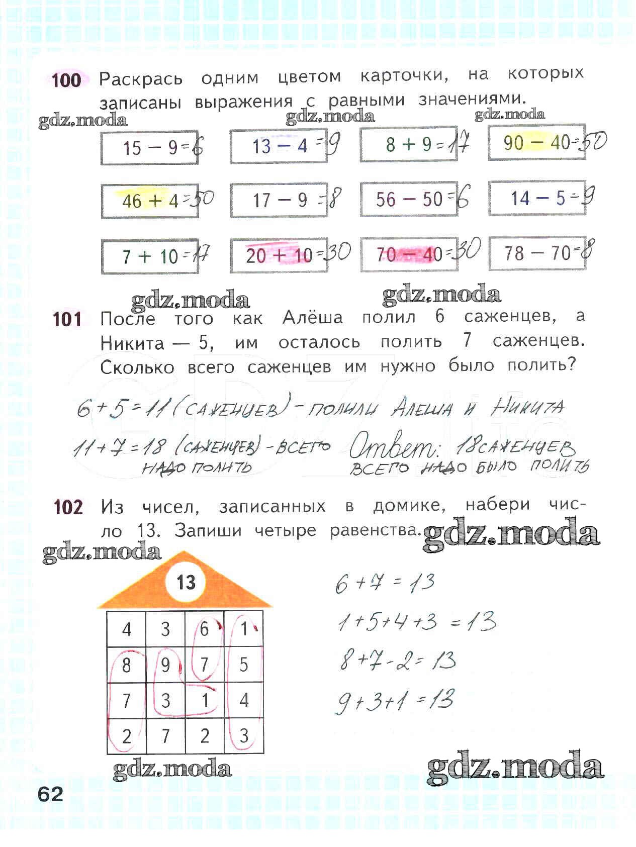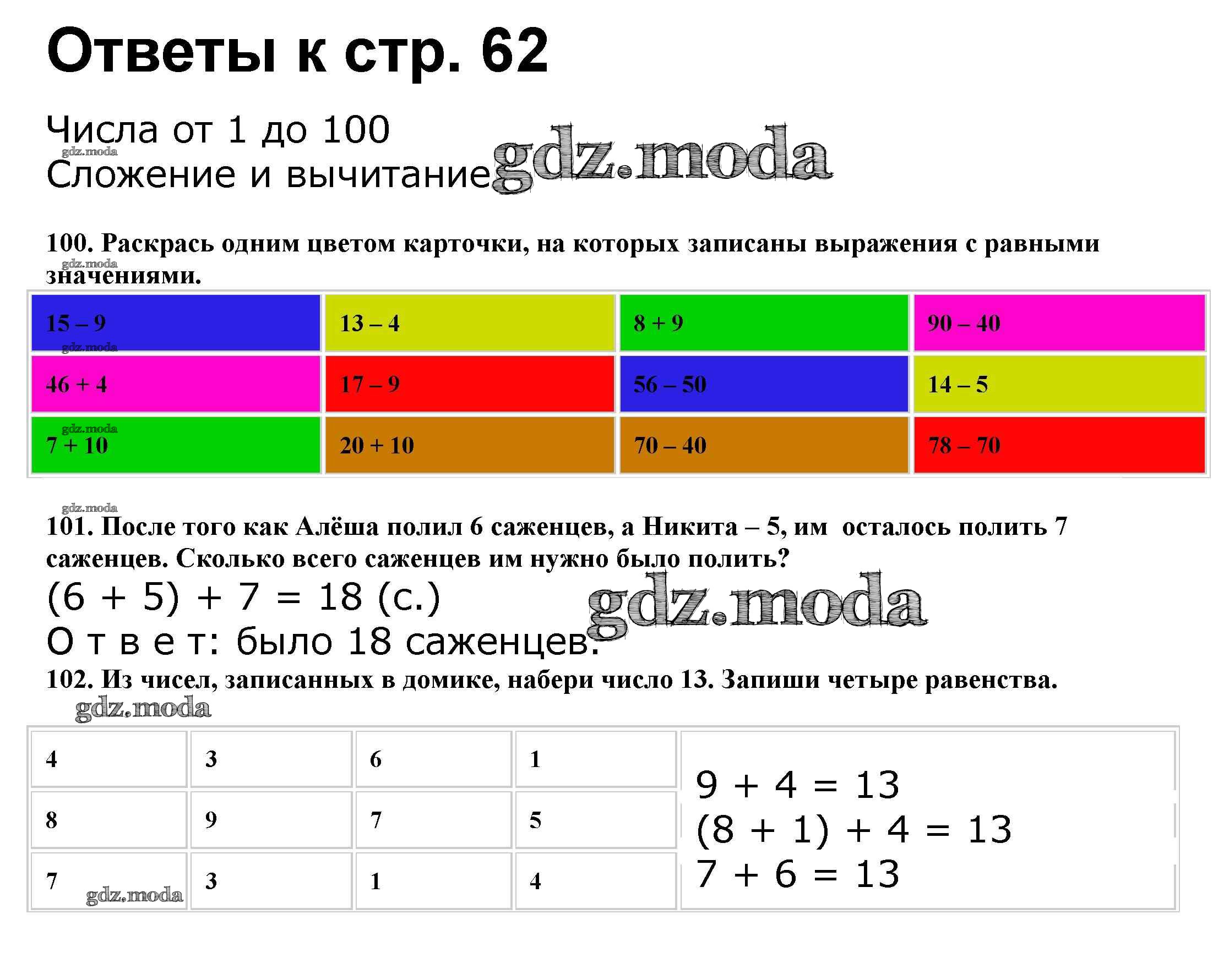 ОТВЕТ на задание № 62 Рабочая тетрадь по Математике 2 класс Волкова Школа России