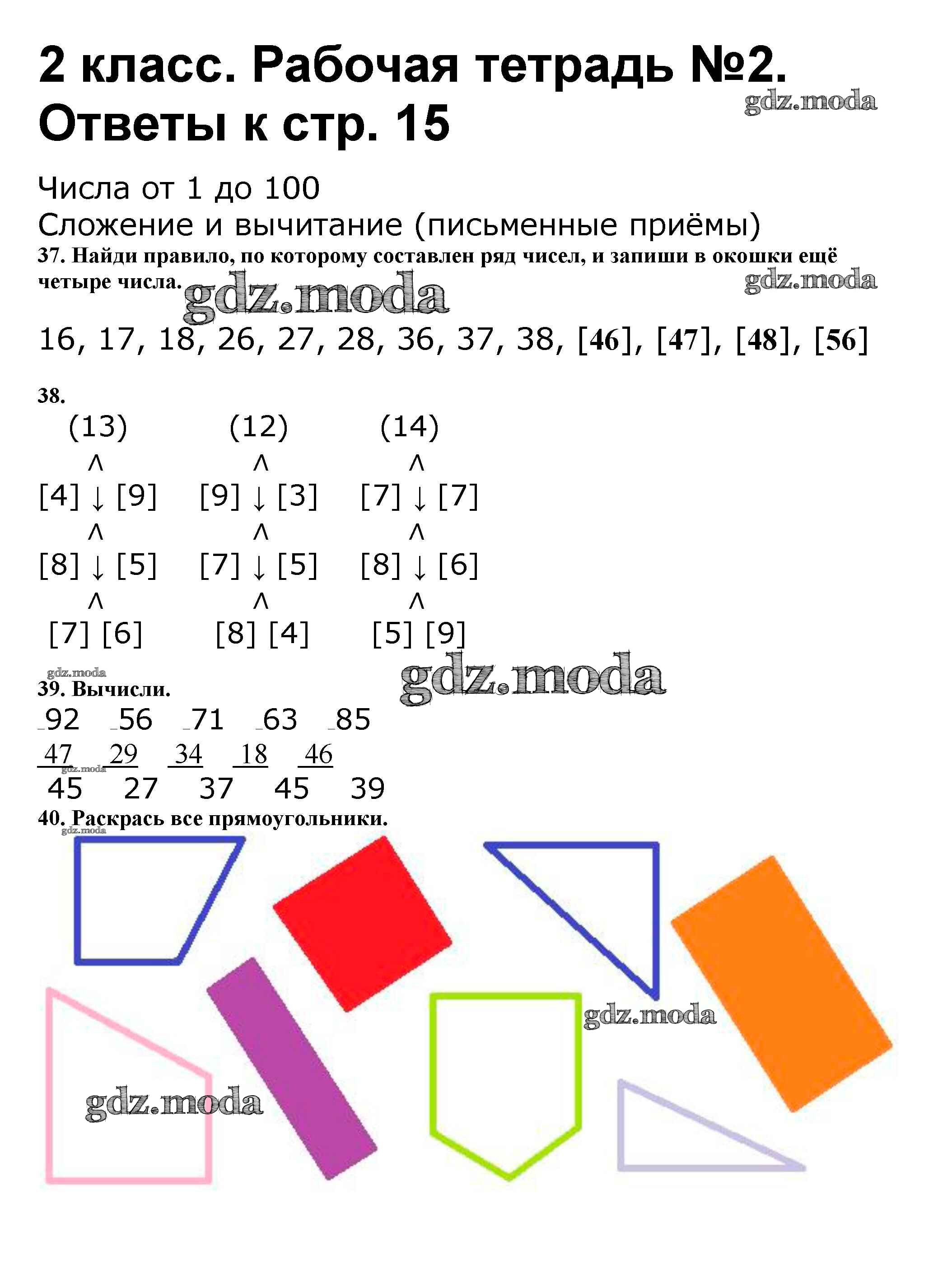 ОТВЕТ на задание № 15 Рабочая тетрадь по Математике 2 класс Волкова Школа России