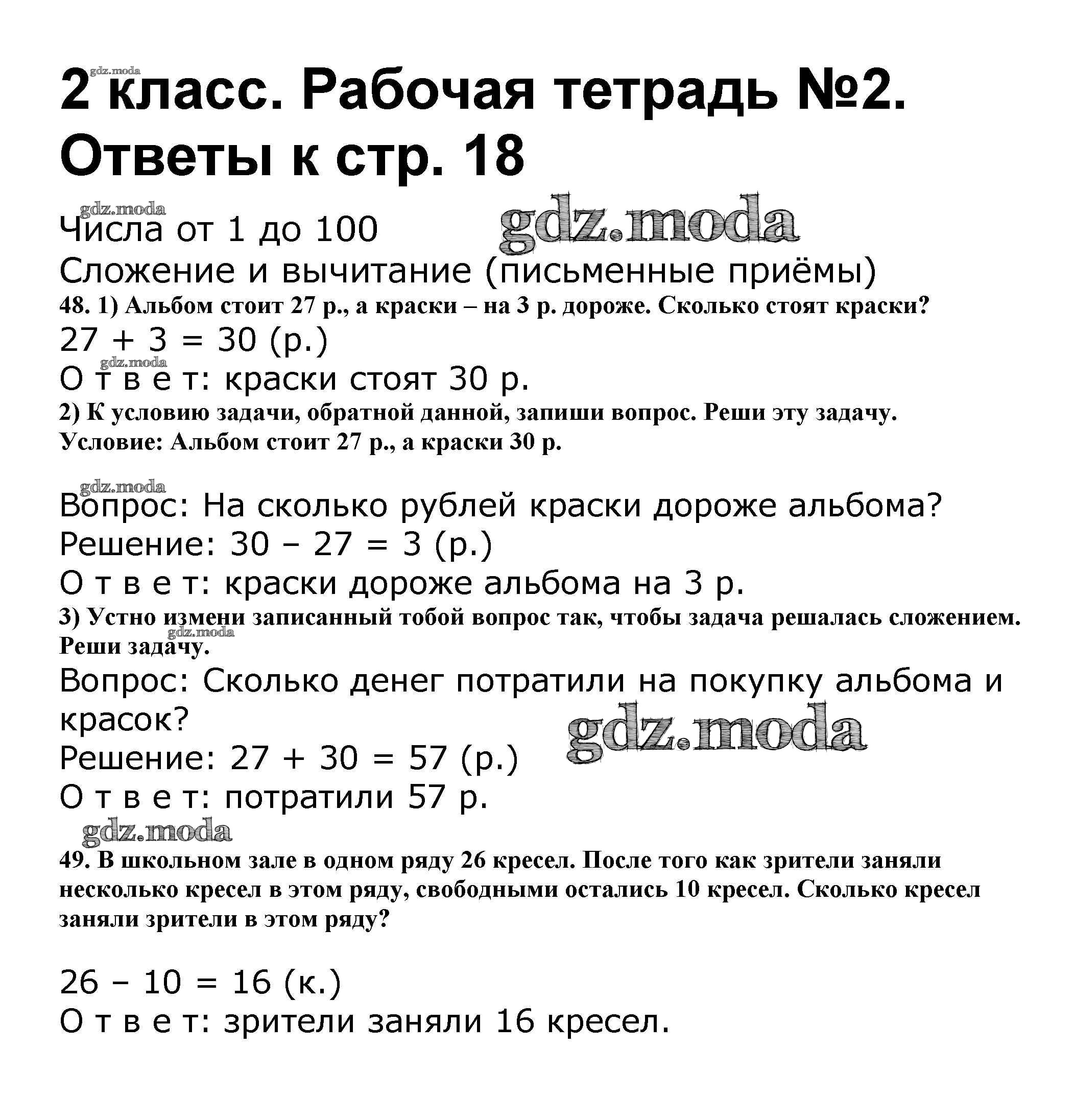 ОТВЕТ на задание № 18 Рабочая тетрадь по Математике 2 класс Волкова Школа России