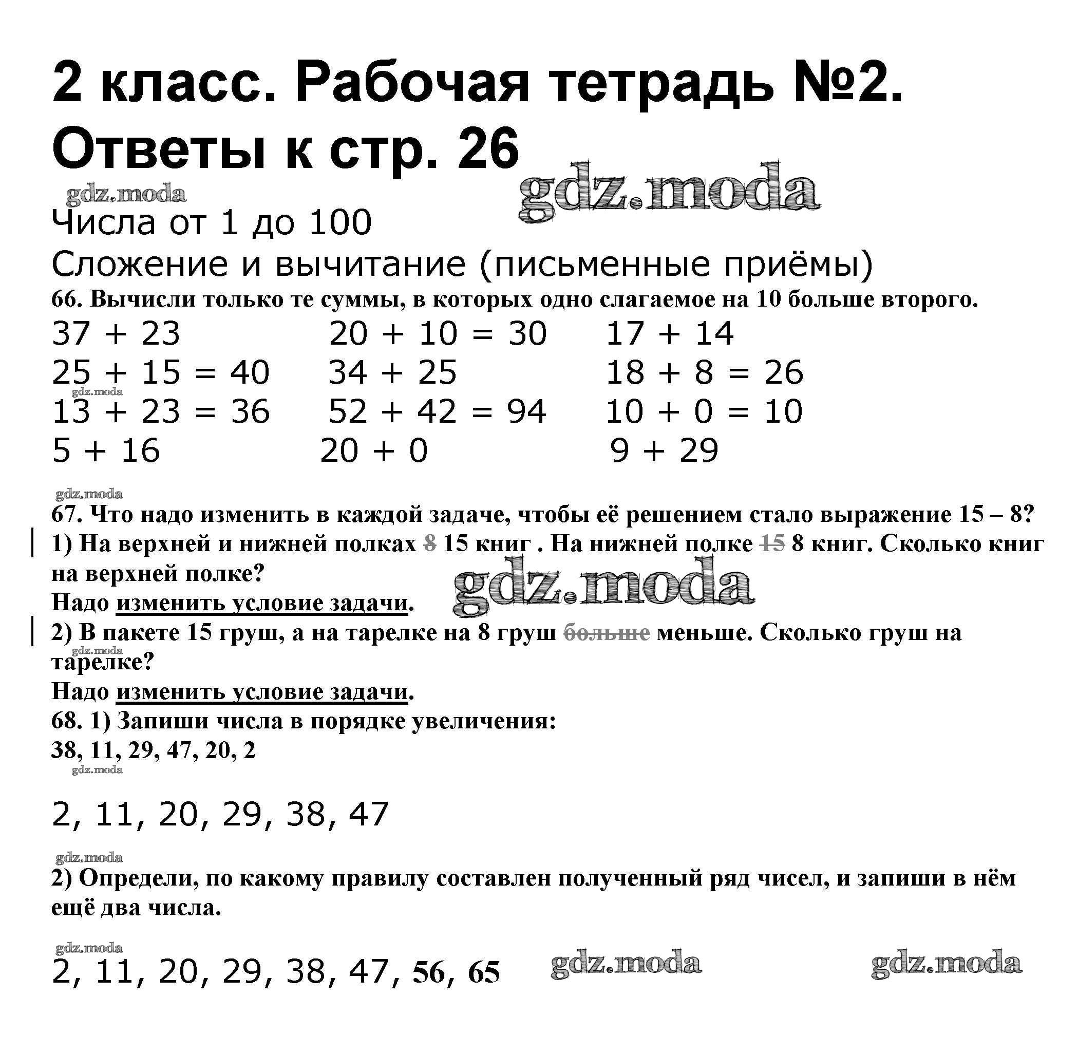 ОТВЕТ на задание № 26 Рабочая тетрадь по Математике 2 класс Волкова Школа России