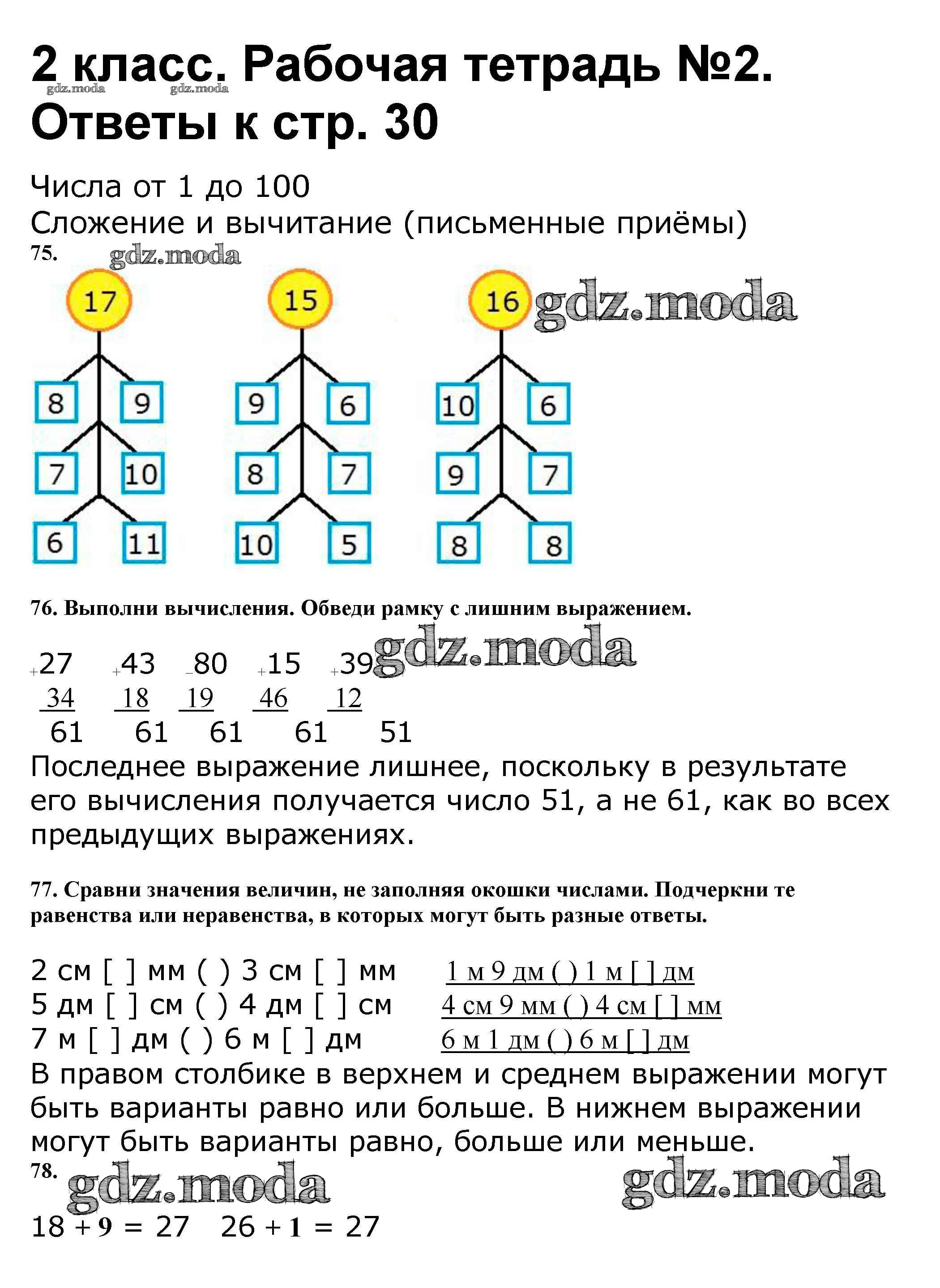 ОТВЕТ на задание № 30 Рабочая тетрадь по Математике 2 класс Волкова Школа России