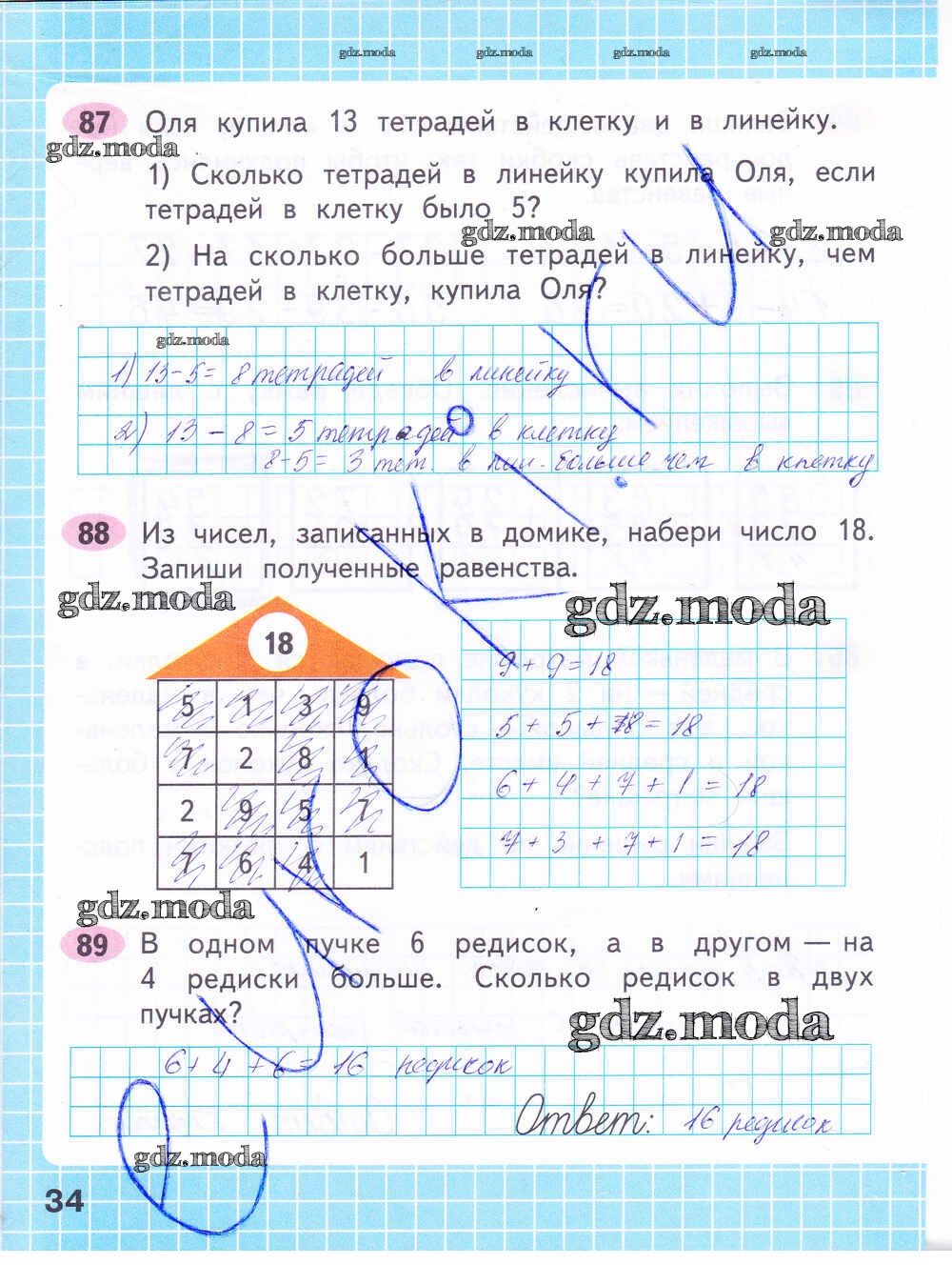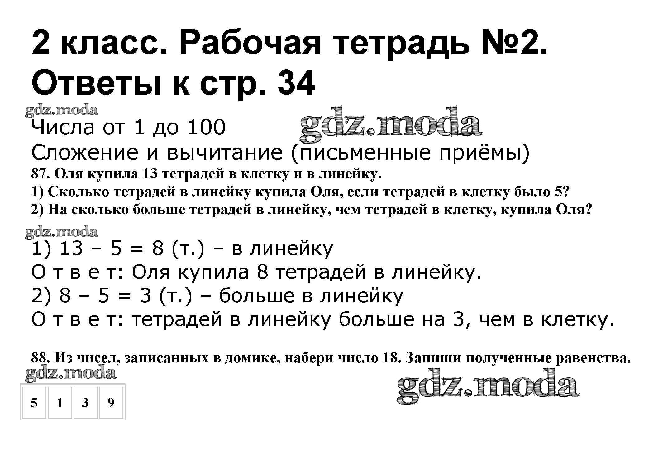 ОТВЕТ на задание № 34 Рабочая тетрадь по Математике 2 класс Волкова Школа России