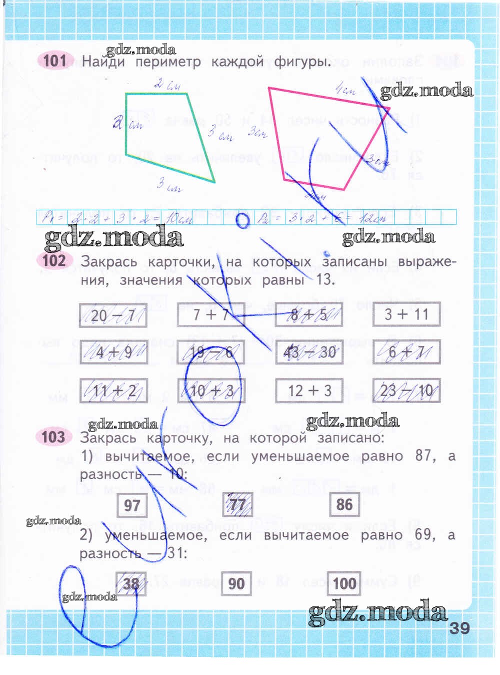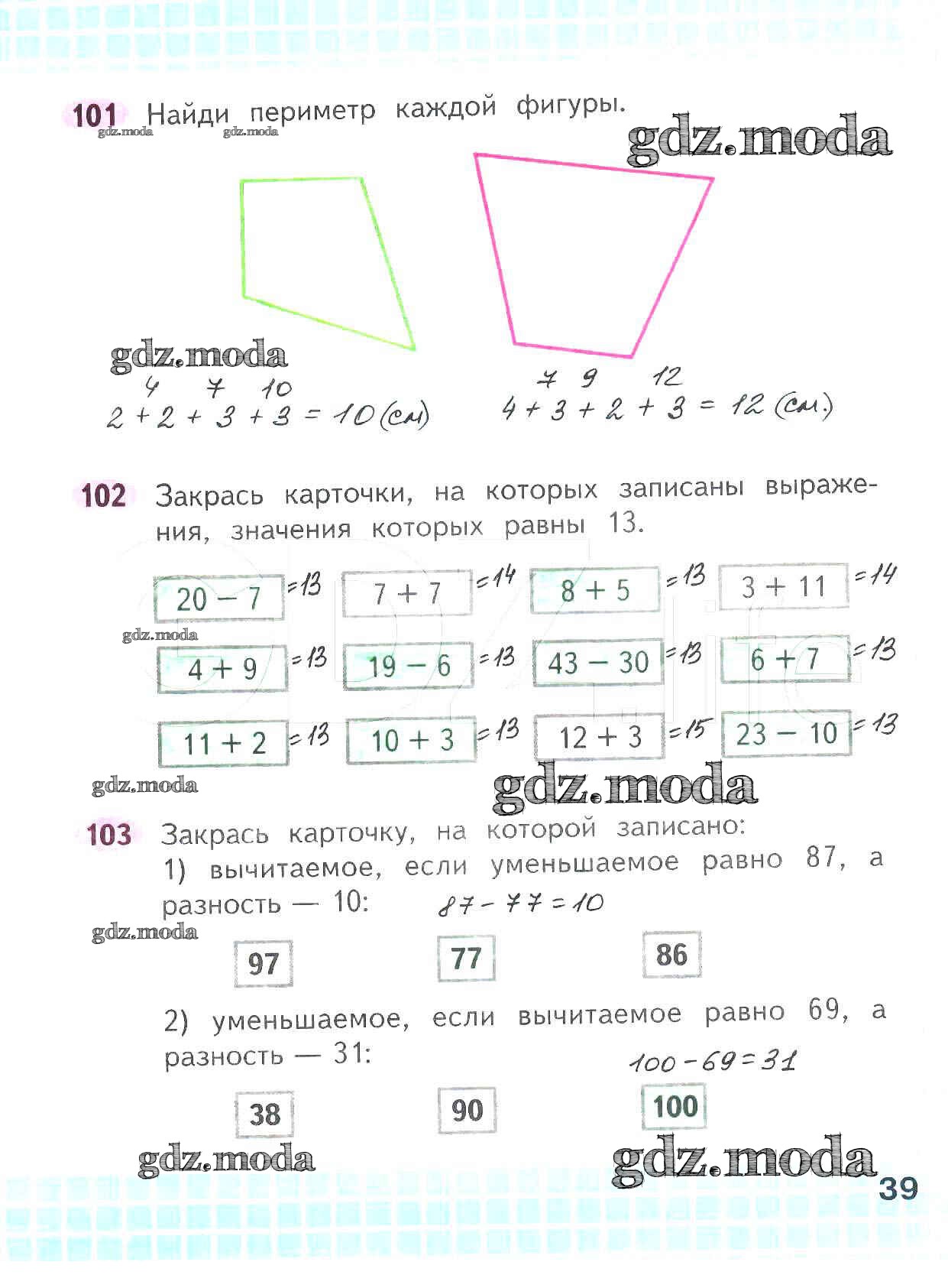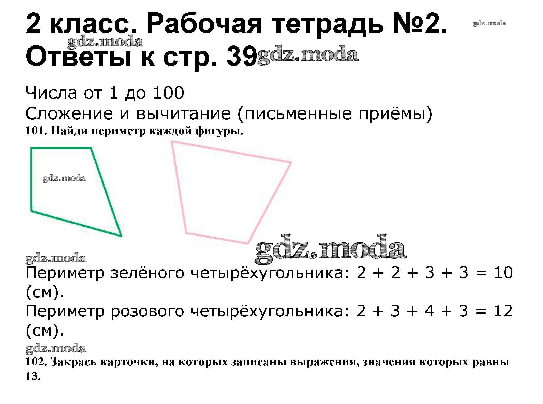 ОТВЕТ на задание № 39 Рабочая тетрадь по Математике 2 класс Волкова Школа России