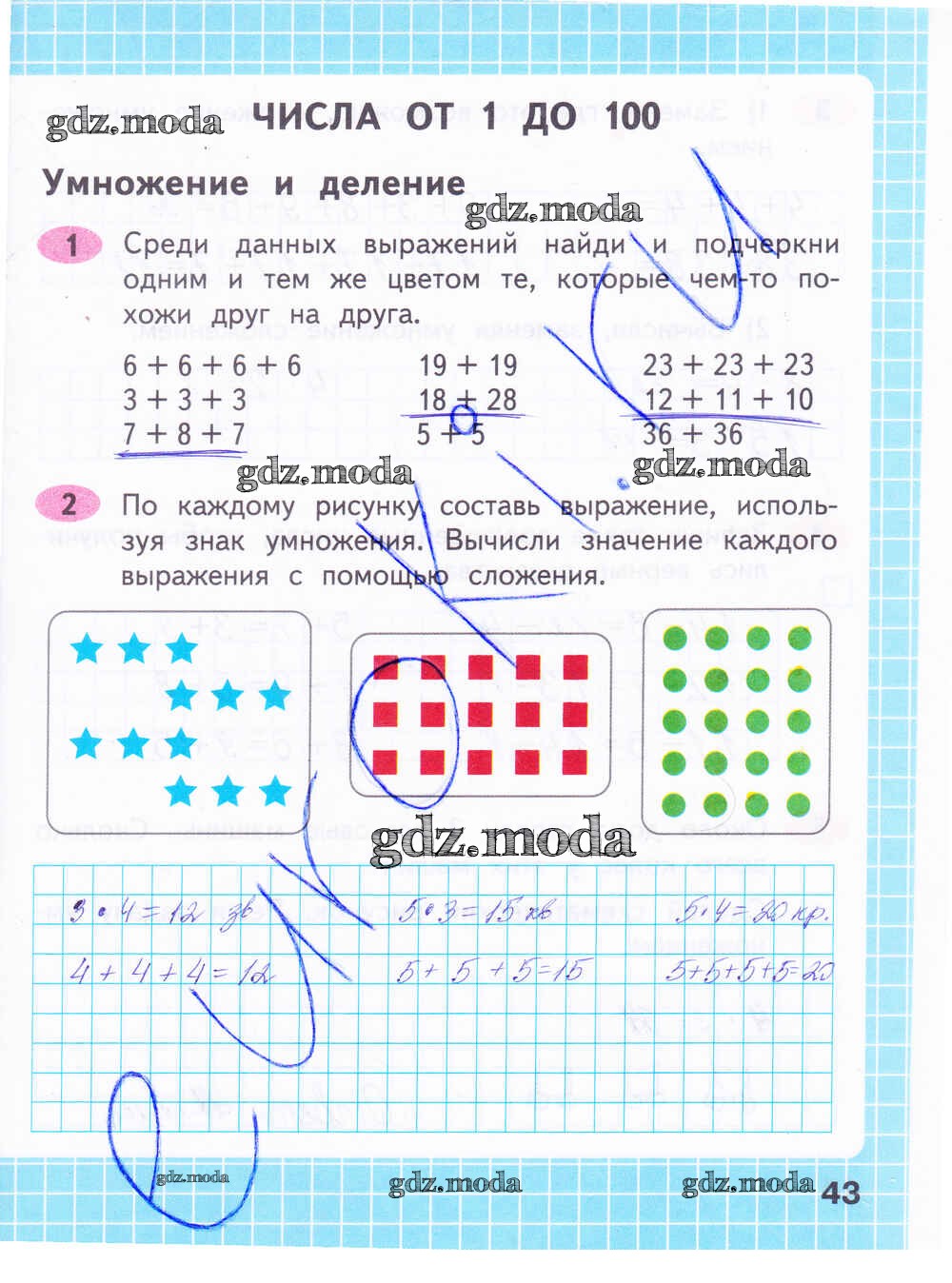 ОТВЕТ на задание № 43 Рабочая тетрадь по Математике 2 класс Волкова Школа России