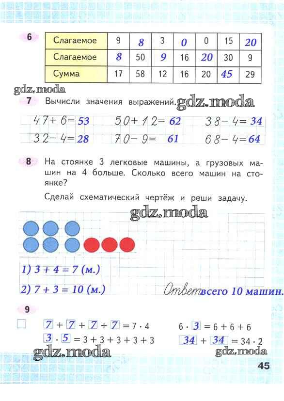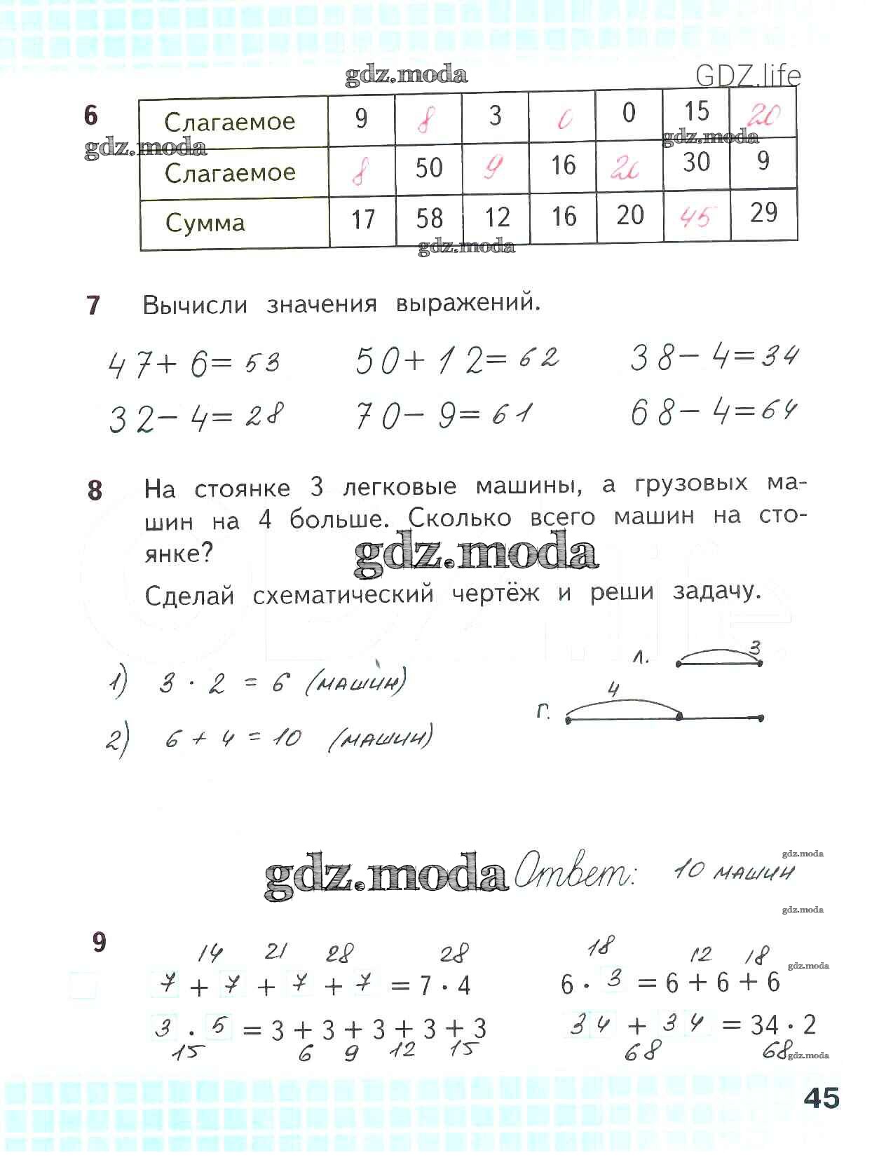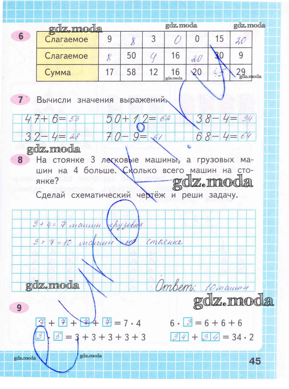 ОТВЕТ на задание № 45 Рабочая тетрадь по Математике 2 класс Волкова Школа России