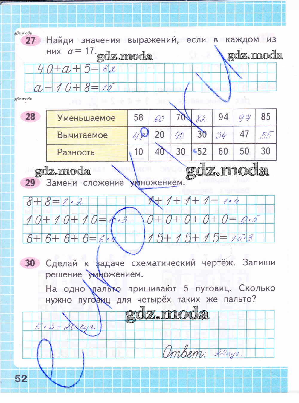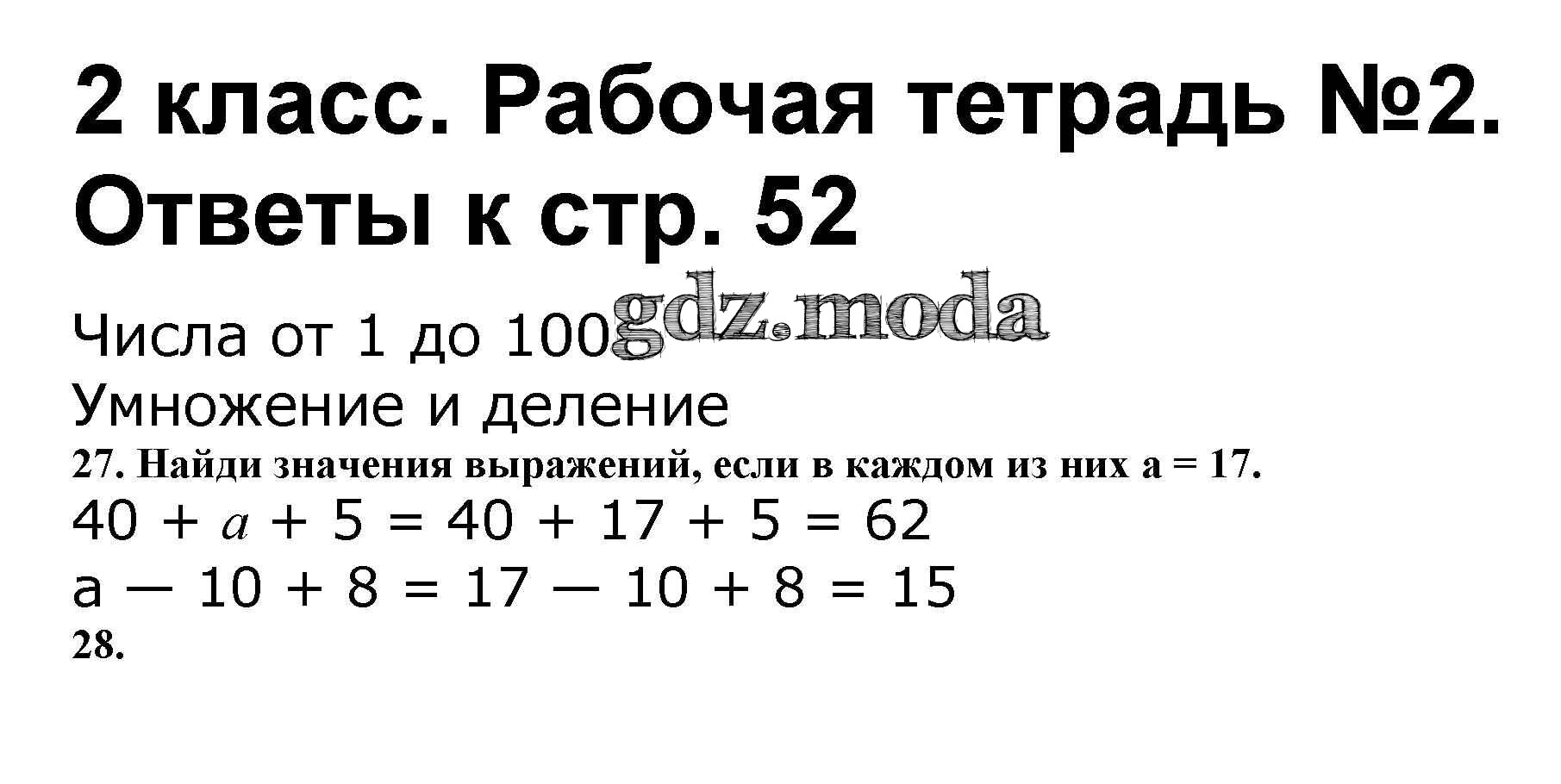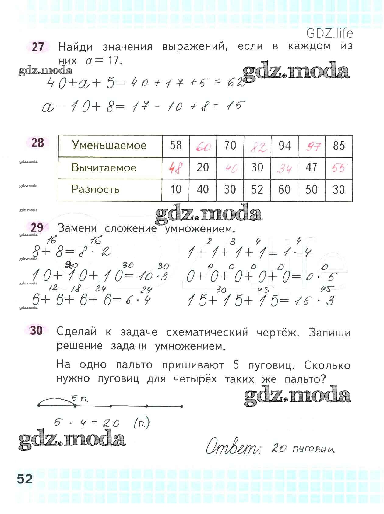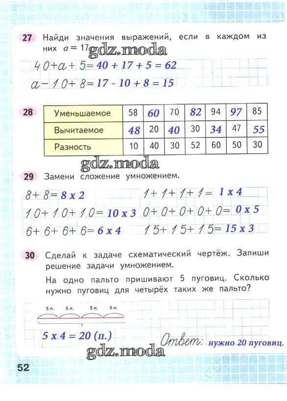 ОТВЕТ на задание № 52 Рабочая тетрадь по Математике 2 класс Волкова Школа России