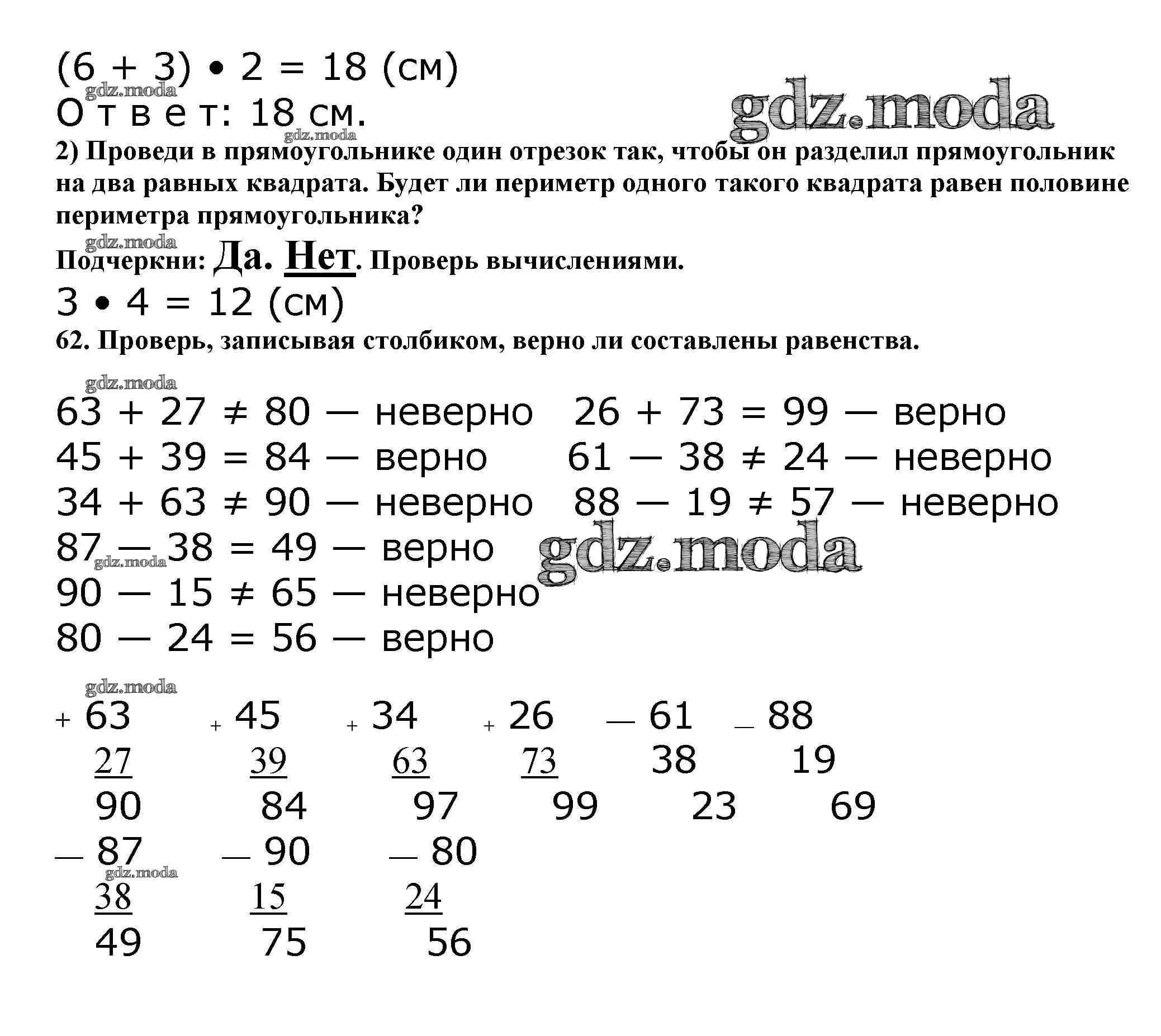 ОТВЕТ на задание № 63 Рабочая тетрадь по Математике 2 класс Волкова Школа России