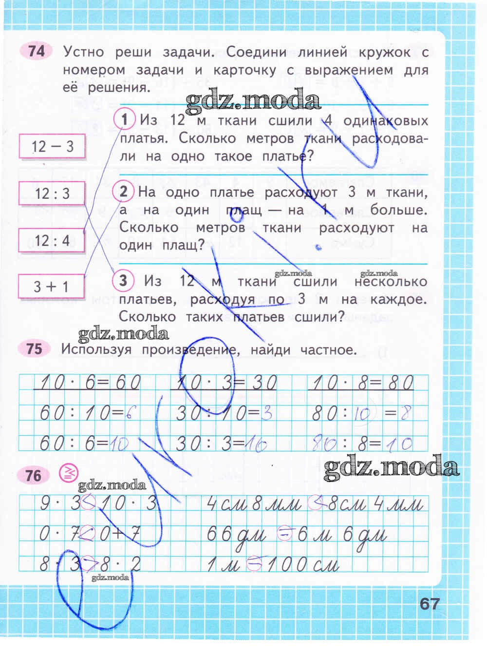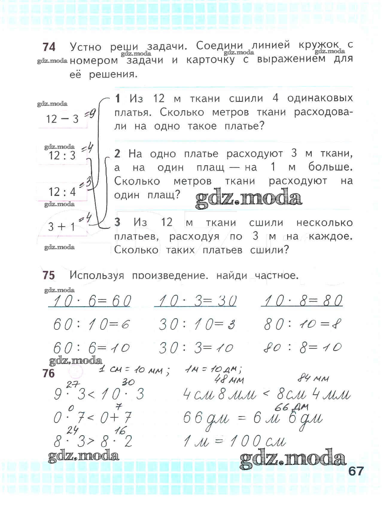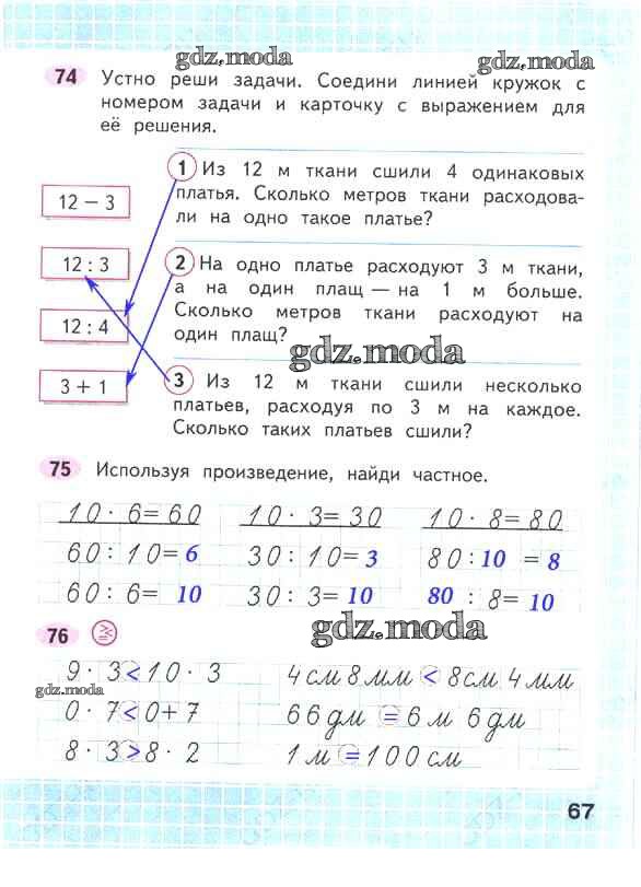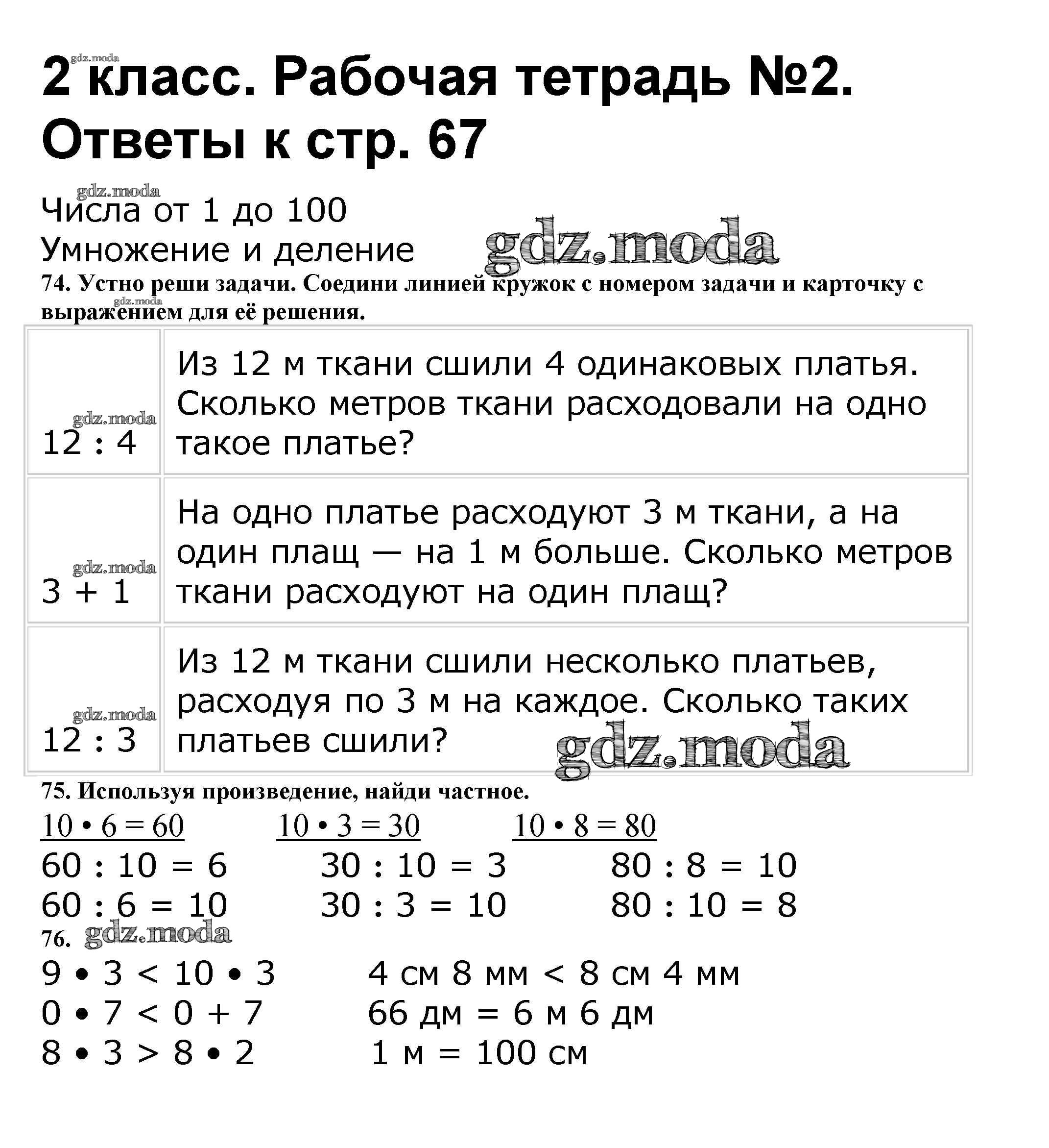 ОТВЕТ на задание № 67 Рабочая тетрадь по Математике 2 класс Волкова Школа России