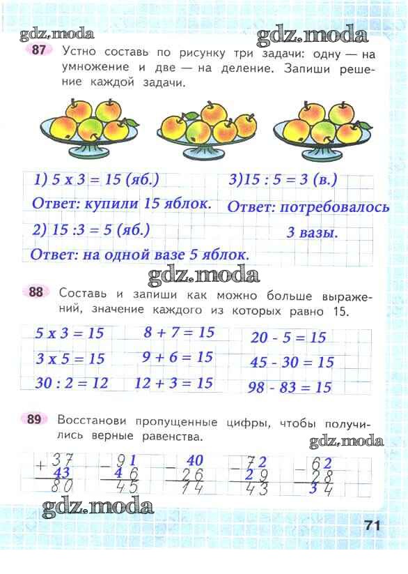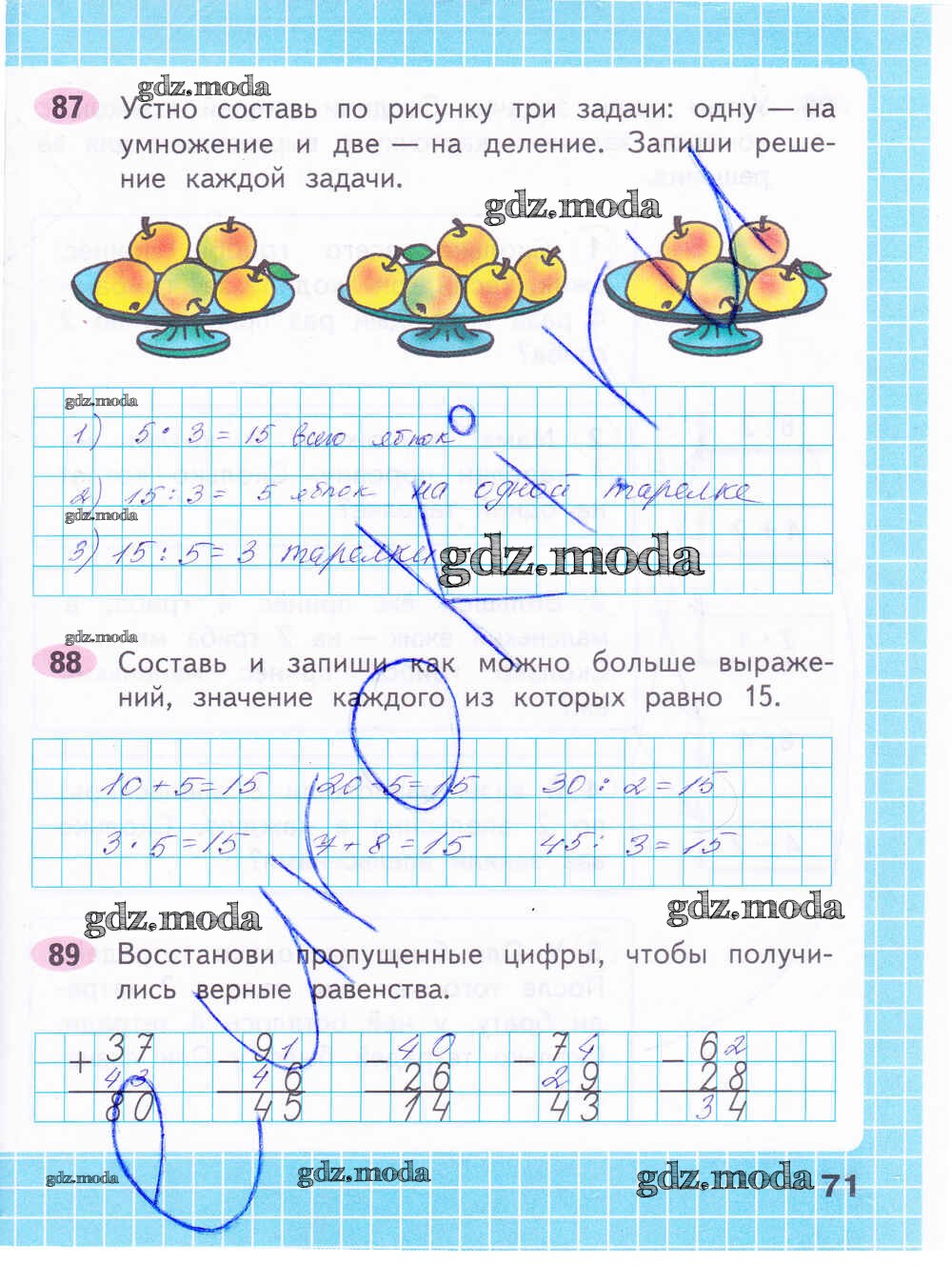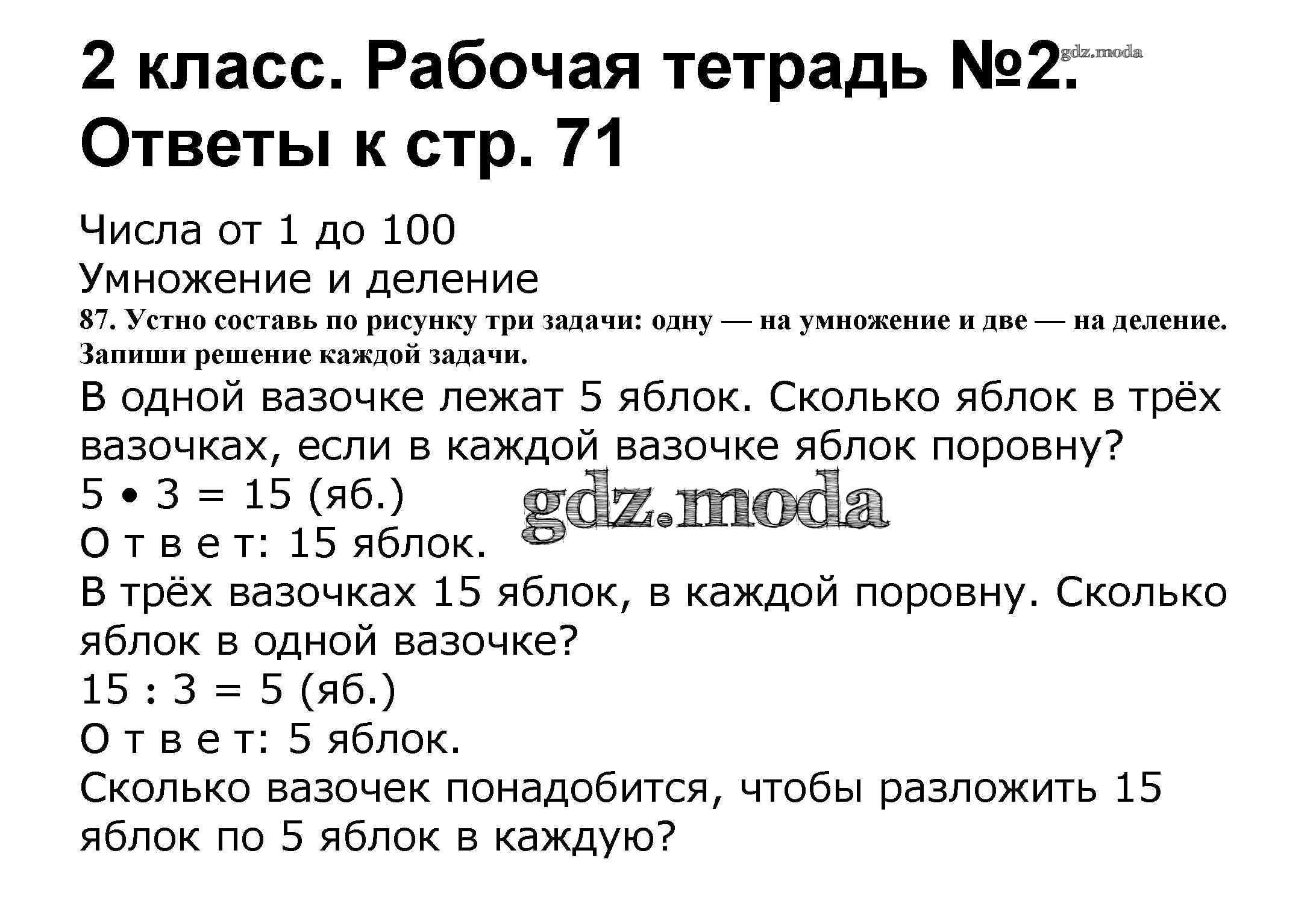 ОТВЕТ на задание № 71 Рабочая тетрадь по Математике 2 класс Волкова Школа России