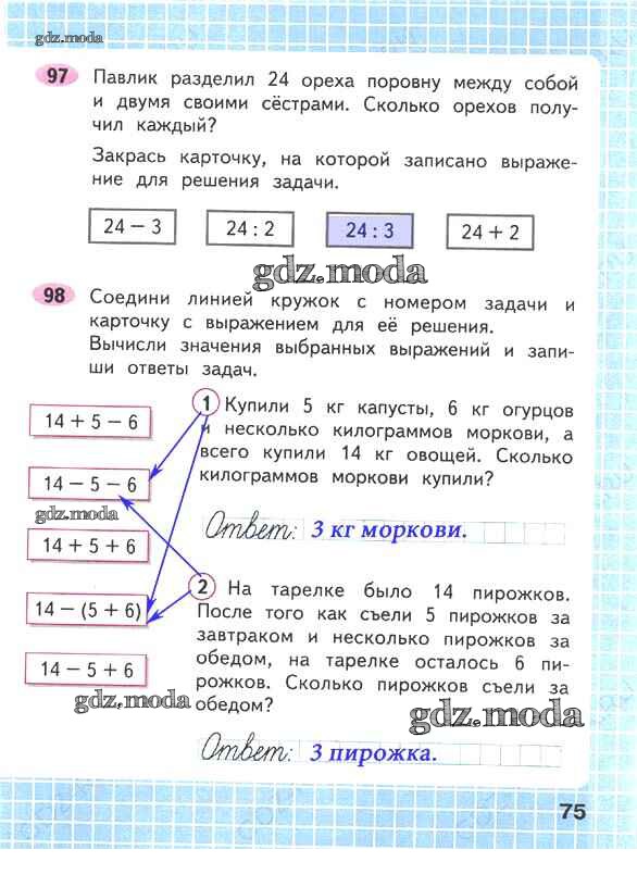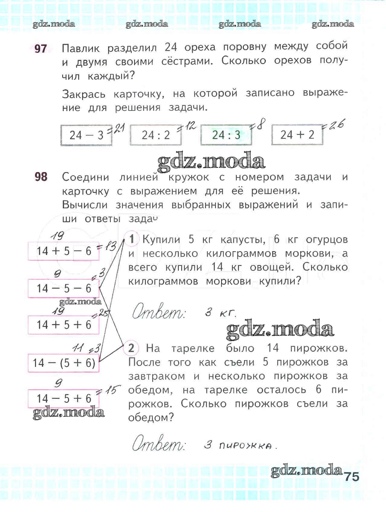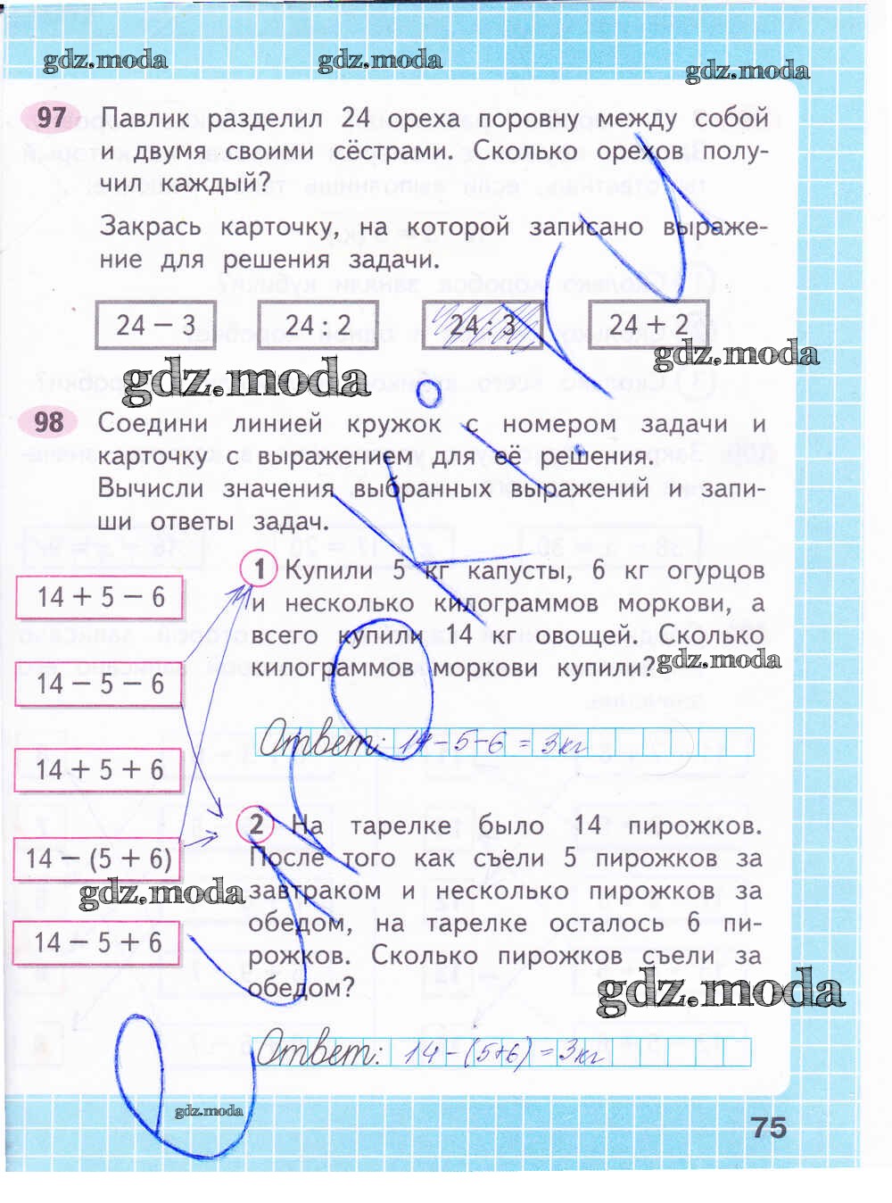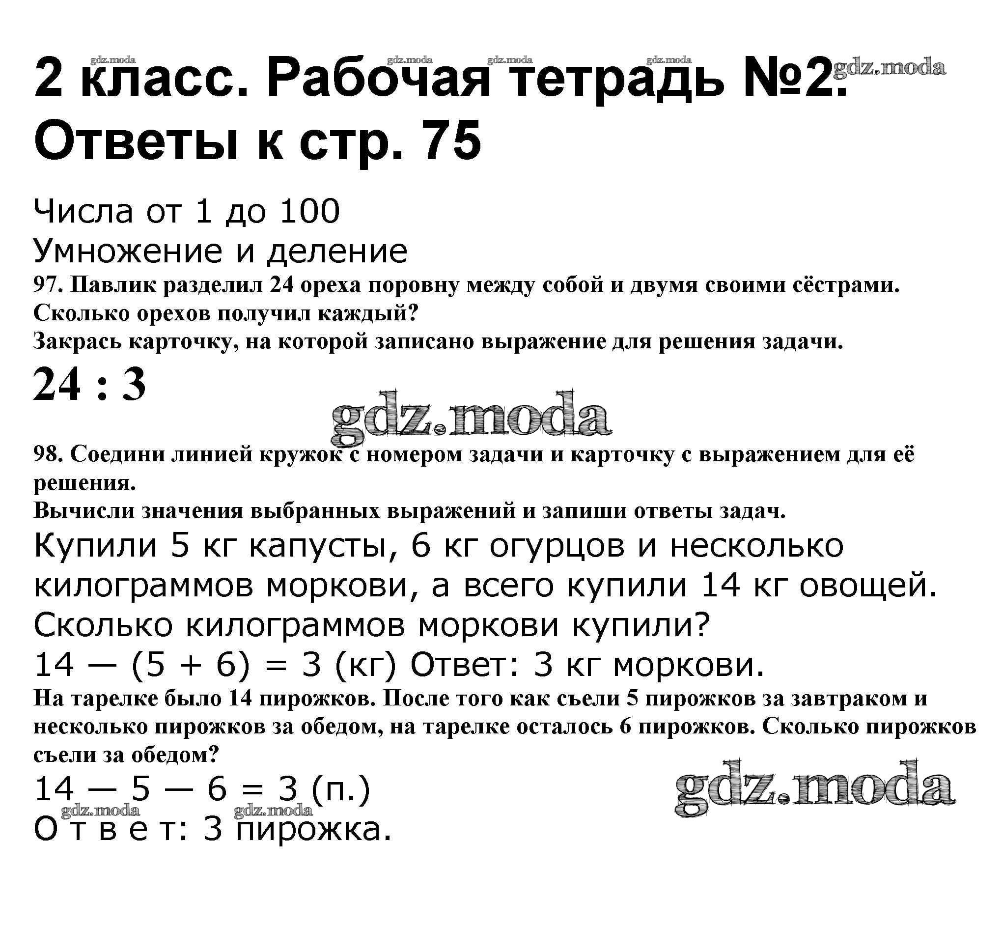 ОТВЕТ на задание № 75 Рабочая тетрадь по Математике 2 класс Волкова Школа России