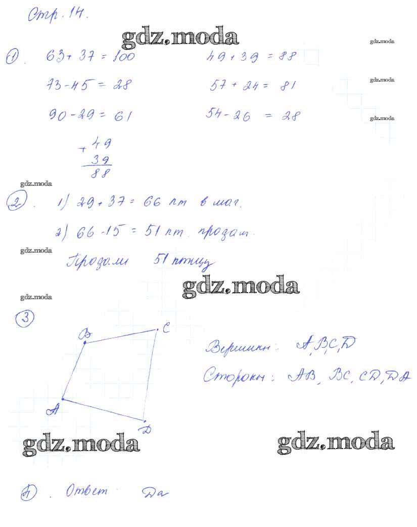 ГДЗ решение к заданию № 14 Математика 2 класс тетрадь для контрольных работ Рудницкая В.Н. Вентана-граф 2014 ФГОС бесплатно на гдз.мода!