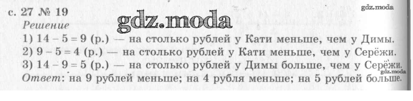 ГДЗ решение к заданию № 19 Математика 2 класс Рудницкая В.Н. Вентана-граф 2016 Часть 1, Часть 2 ФГОС бесплатно на гдз.мода!