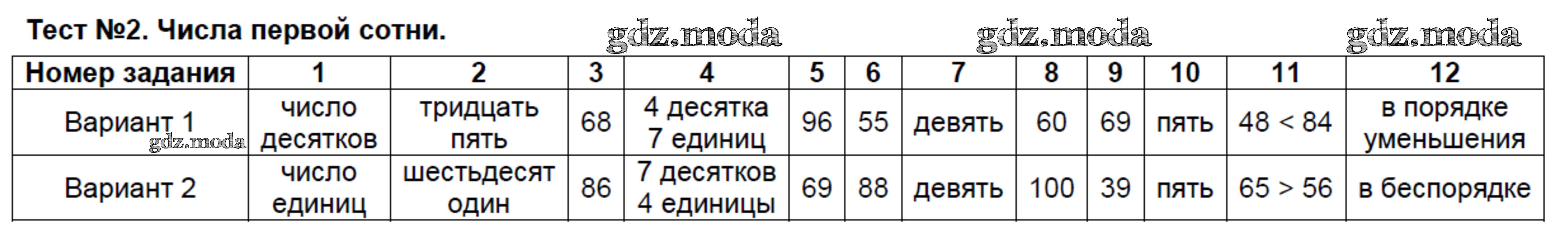 ОТВЕТ на задание № 2 Тесты по Математике 2 класс Рудницкая УМК