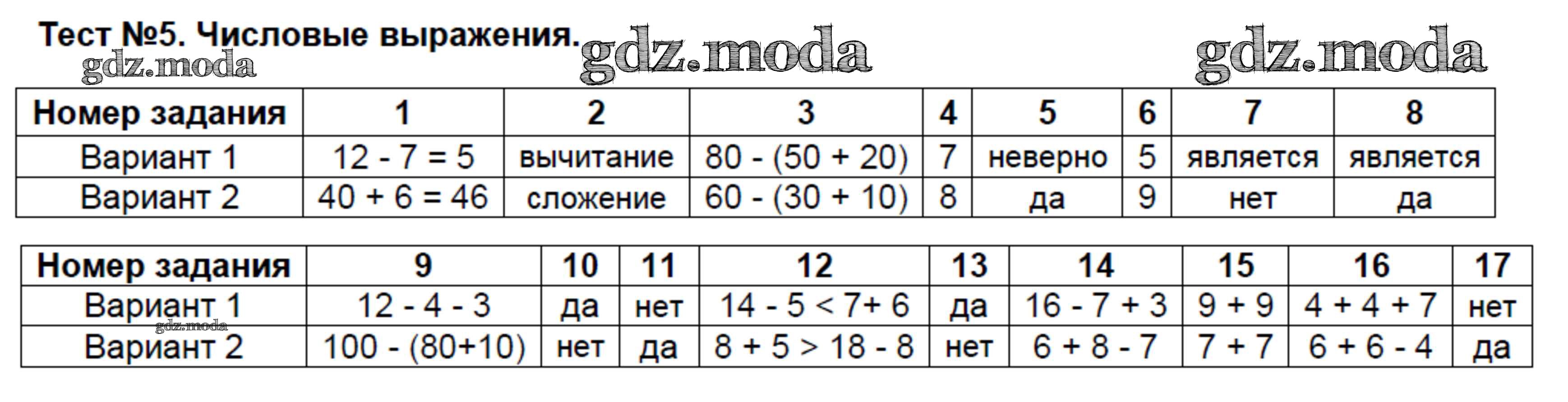 ГДЗ решение к заданию № 5 Математика 2 класс Рудницкая В.Н. (тесты) Экзамен 2016 Часть 1, Часть 2 ФГОС бесплатно на гдз.мода!