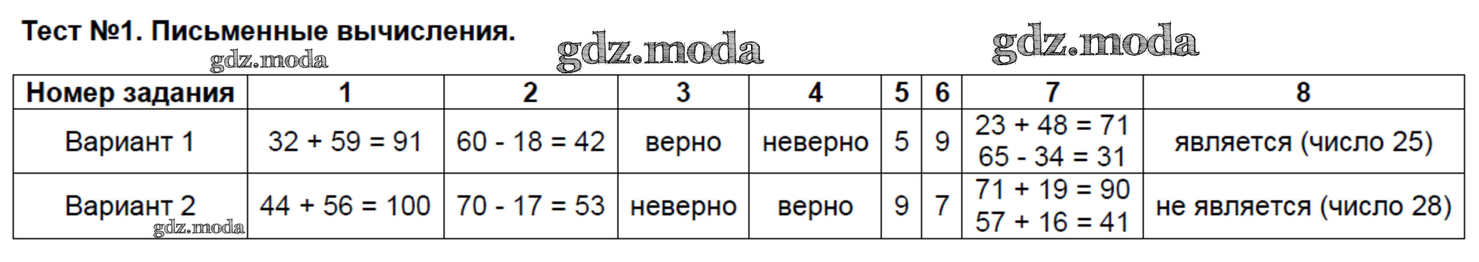 ОТВЕТ на задание № 1 Тесты по Математике 2 класс Рудницкая УМК