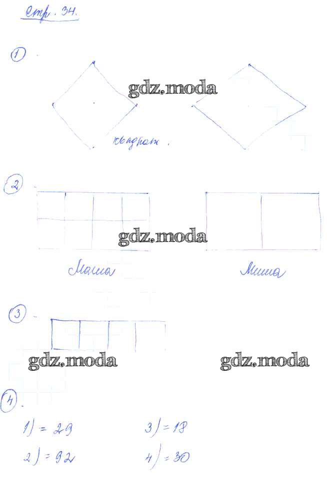ГДЗ решение к заданию № 34 Математика 2 класс тетрадь для самостоятельной работы Захарова О.А. Академкнига 2016 Часть 1, Часть 2, Часть 3 ФГОС бесплатно на гдз.мода!