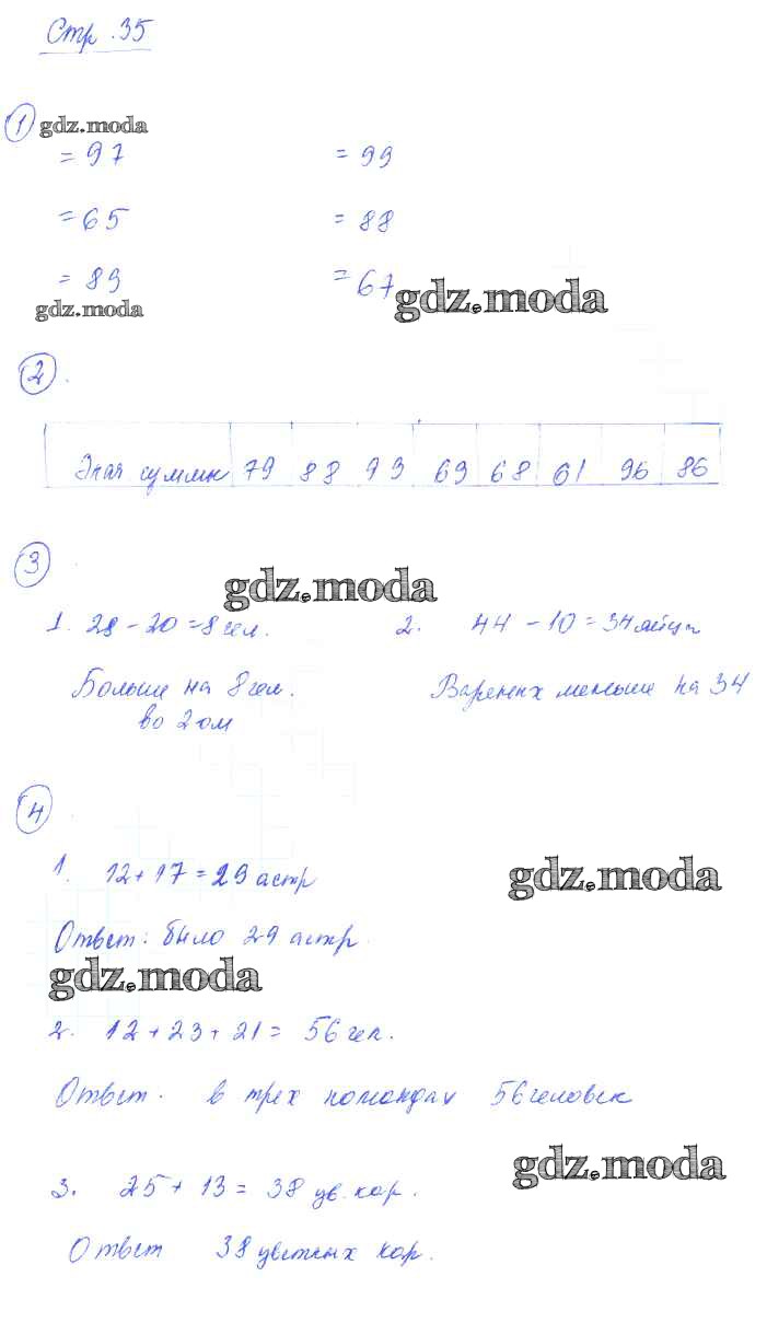 ГДЗ решение к заданию № 35 Математика 2 класс тетрадь для самостоятельной работы Захарова О.А. Академкнига 2016 Часть 1, Часть 2, Часть 3 ФГОС бесплатно на гдз.мода!