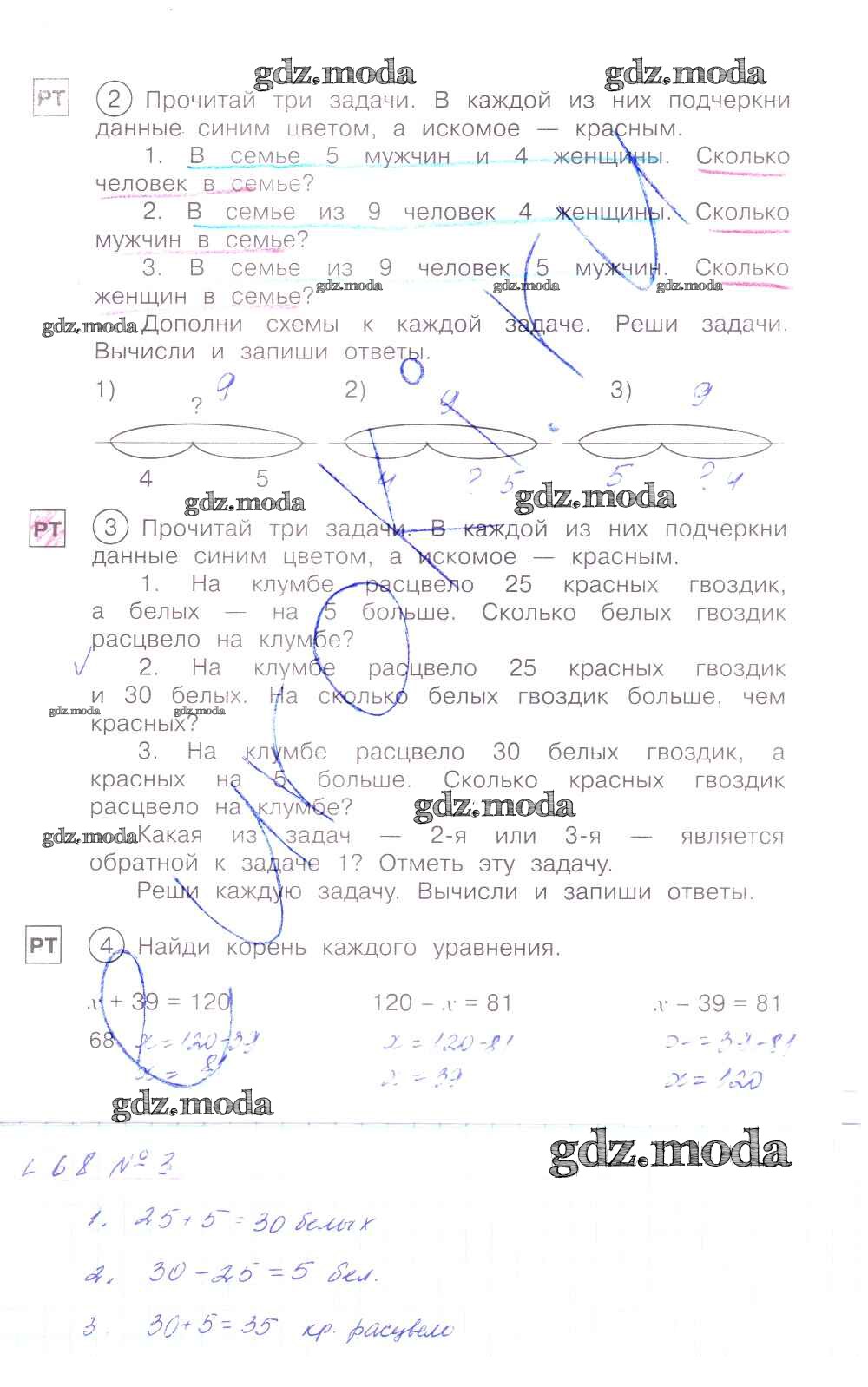 ГДЗ решение к заданию № 68 Математика 2 класс тетрадь для самостоятельной работы Захарова О.А. Академкнига 2016 Часть 1, Часть 2, Часть 3 ФГОС бесплатно на гдз.мода!