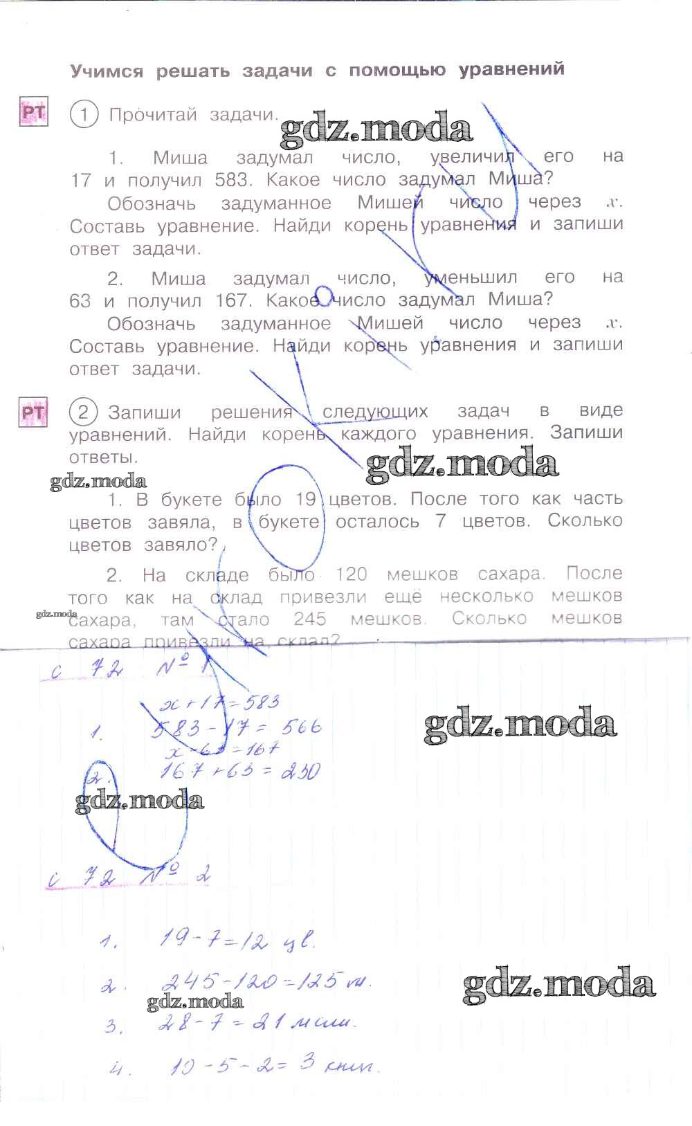 ГДЗ решение к заданию № 72 Математика 2 класс тетрадь для самостоятельной работы Захарова О.А. Академкнига 2016 Часть 1, Часть 2, Часть 3 ФГОС бесплатно на гдз.мода!