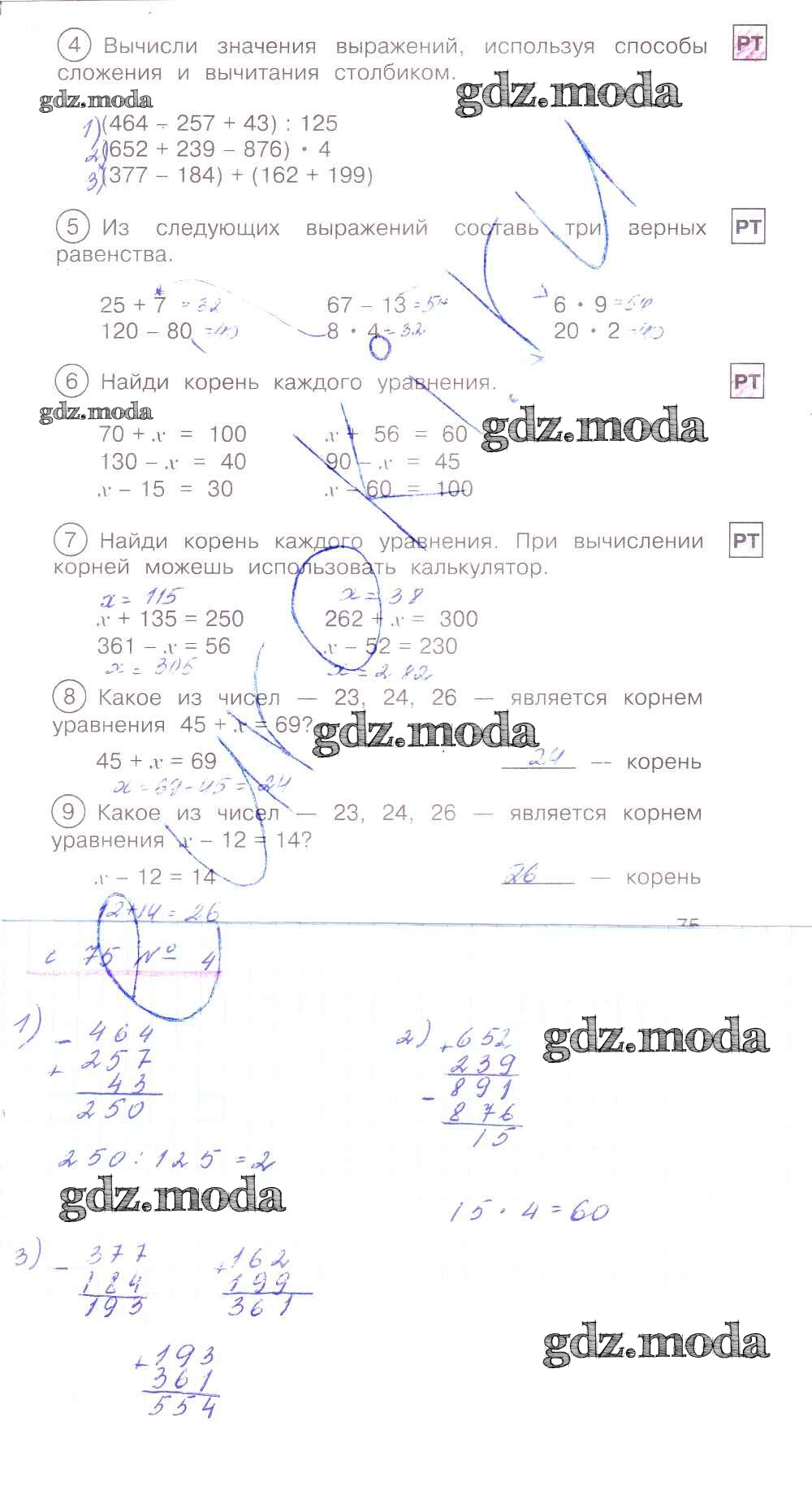 ГДЗ решение к заданию № 75 Математика 2 класс тетрадь для самостоятельной работы Захарова О.А. Академкнига 2016 Часть 1, Часть 2, Часть 3 ФГОС бесплатно на гдз.мода!