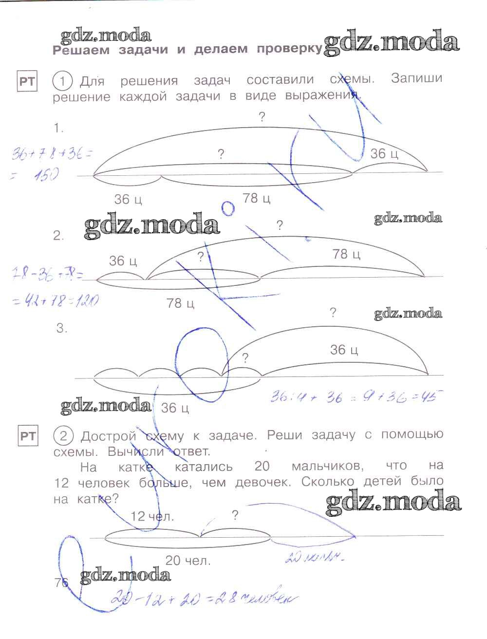 ГДЗ решение к заданию № 76 Математика 2 класс тетрадь для самостоятельной работы Захарова О.А. Академкнига 2016 Часть 1, Часть 2, Часть 3 ФГОС бесплатно на гдз.мода!