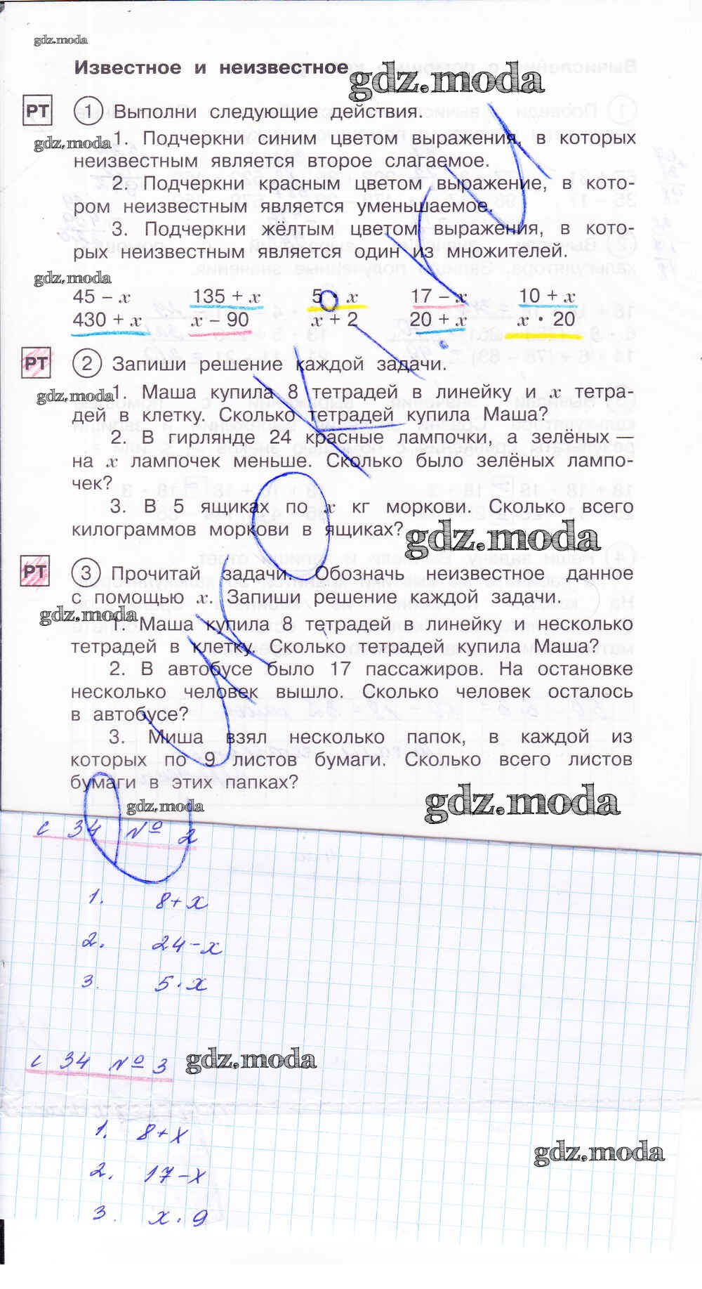 ГДЗ решение к заданию № 34 Математика 2 класс тетрадь для самостоятельной работы Захарова О.А. Академкнига 2016 Часть 1, Часть 2, Часть 3 ФГОС бесплатно на гдз.мода!