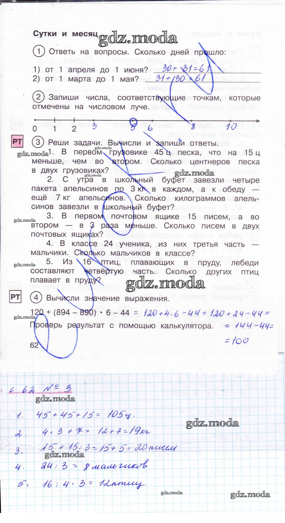 ГДЗ решение к заданию № 62 Математика 2 класс тетрадь для самостоятельной работы Захарова О.А. Академкнига 2016 Часть 1, Часть 2, Часть 3 ФГОС бесплатно на гдз.мода!