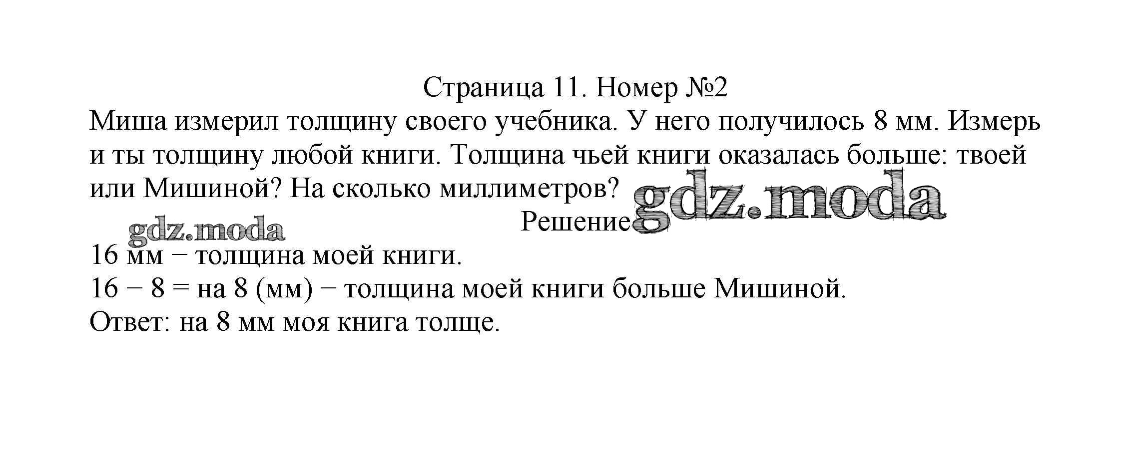 ОТВЕТ на задание № 11 Учебник по Математике 2 класс Моро Школа России