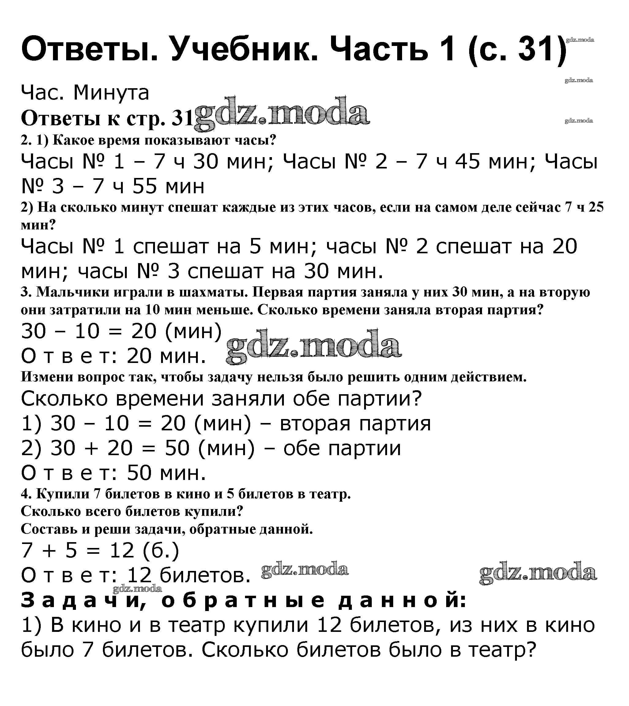 ОТВЕТ на задание № 31 Учебник по Математике 2 класс Моро Школа России