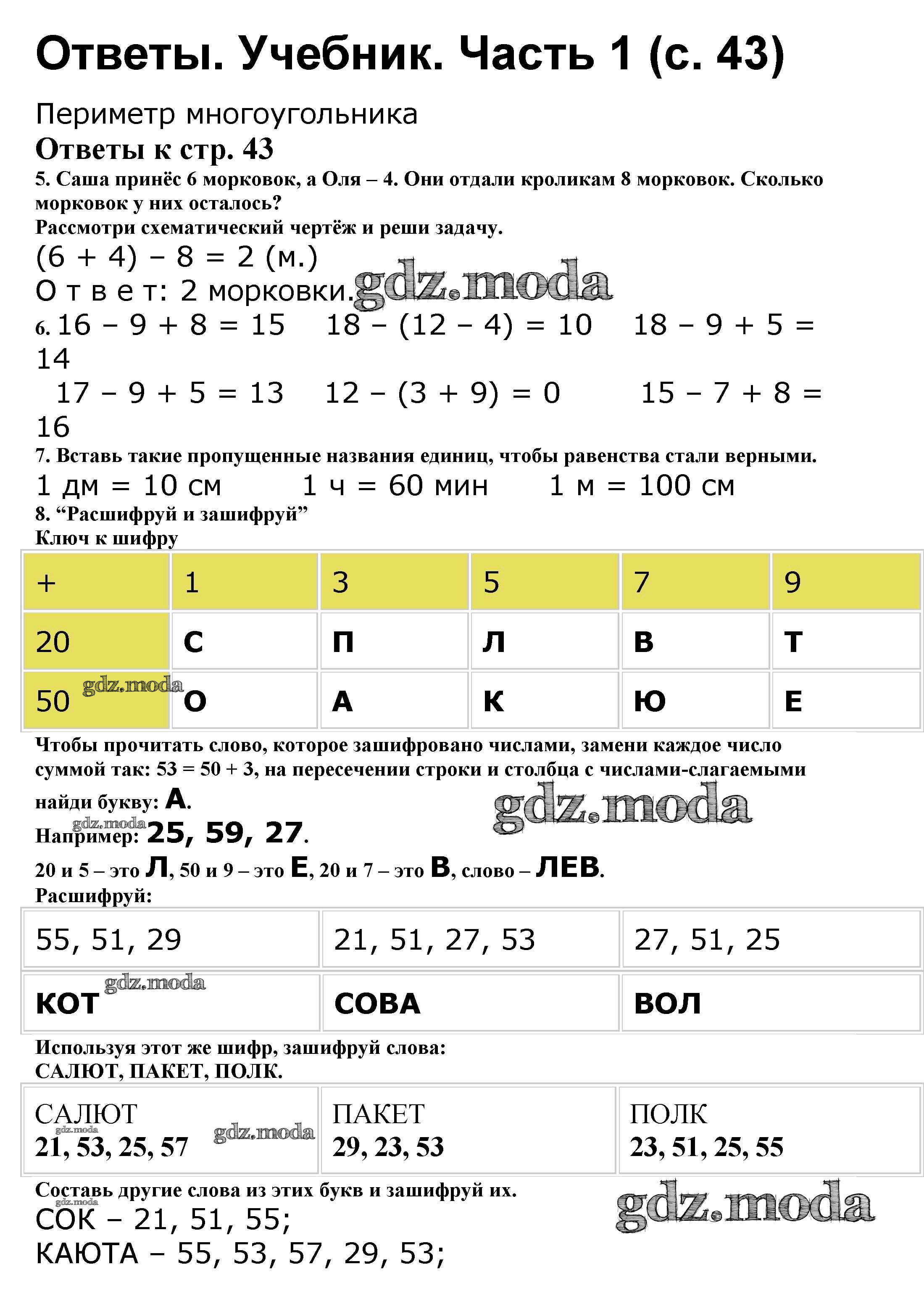 ОТВЕТ на задание № 43 Учебник по Математике 2 класс Моро Школа России