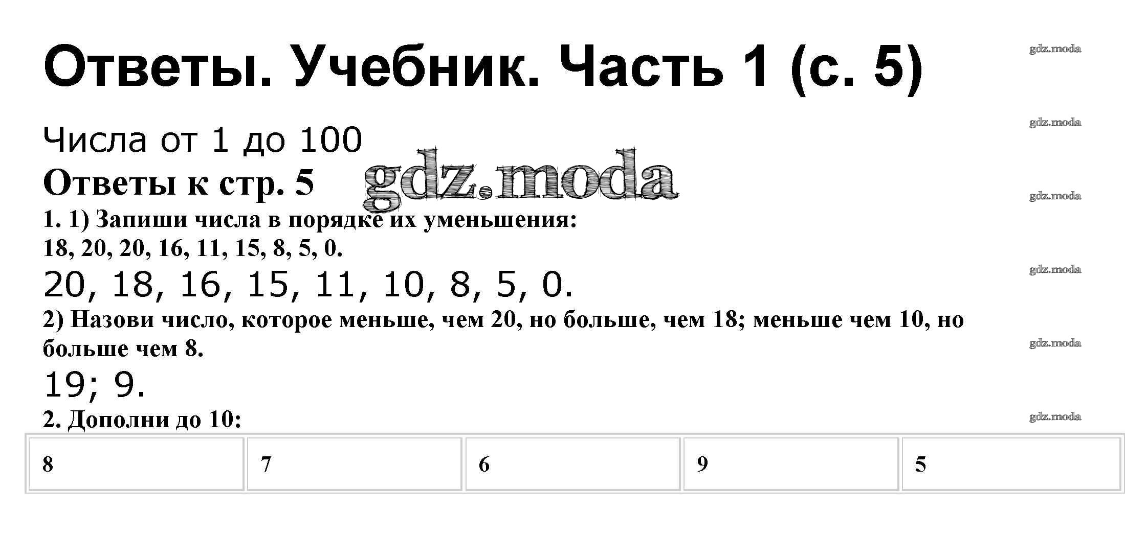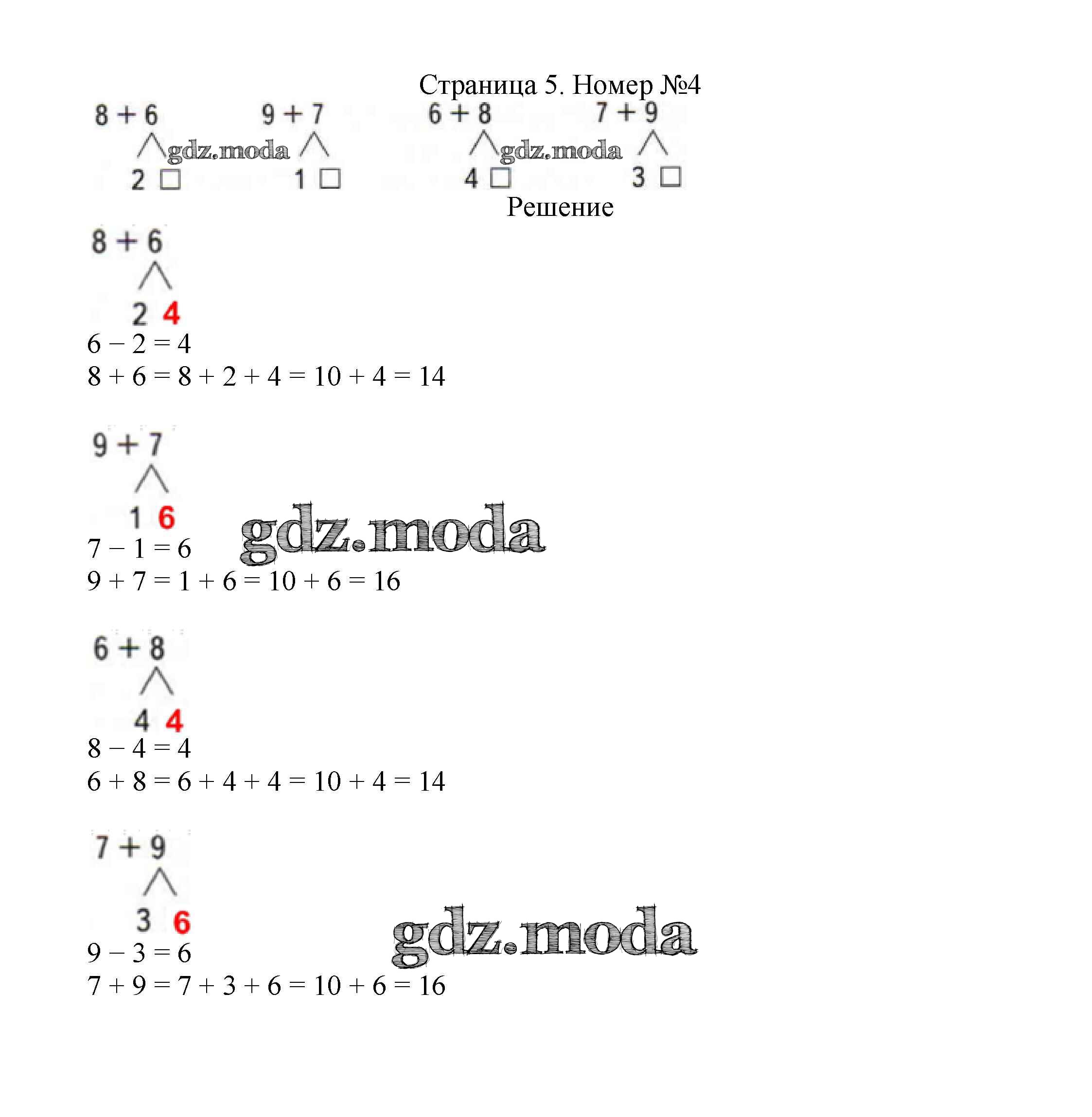ОТВЕТ на задание № 5 Учебник по Математике 2 класс Моро Школа России