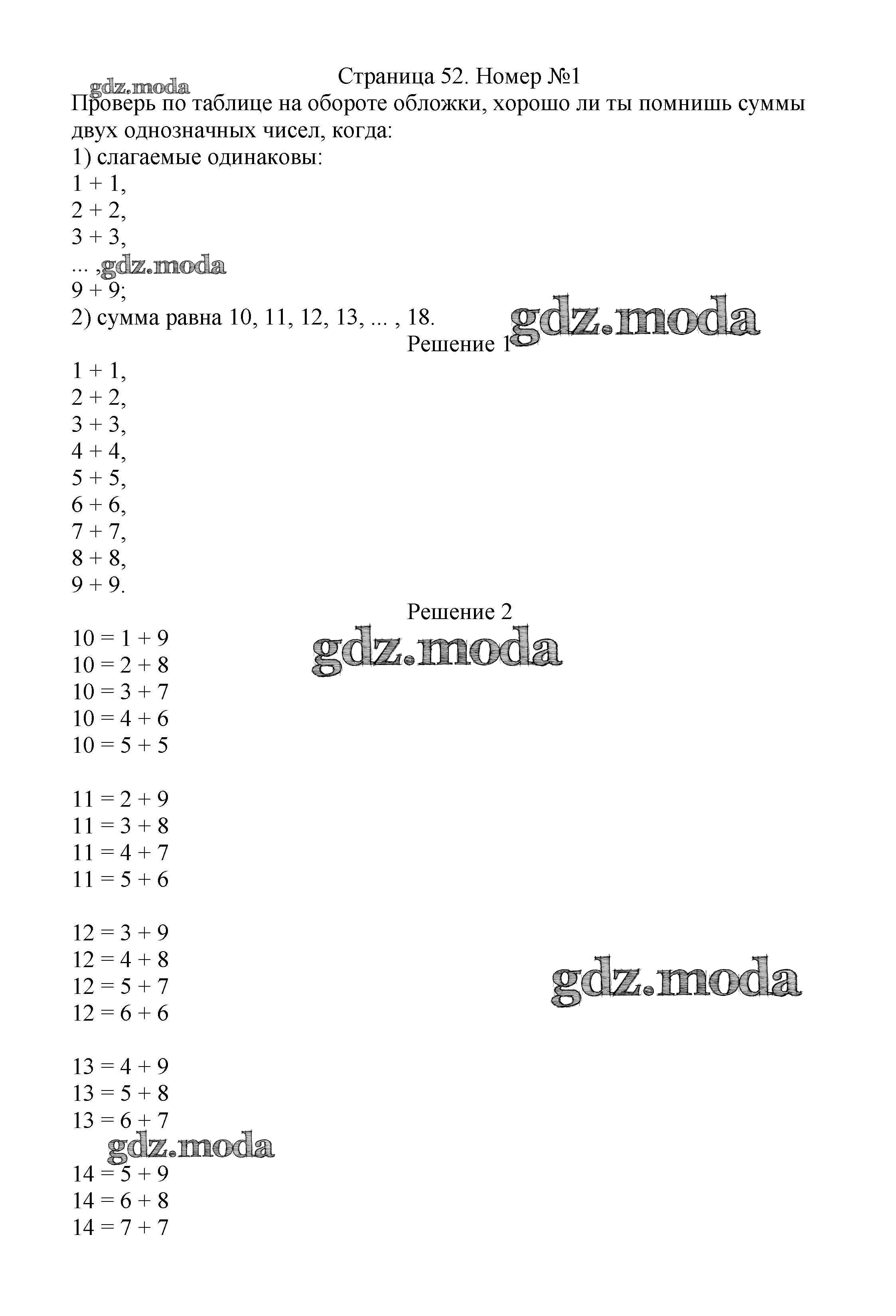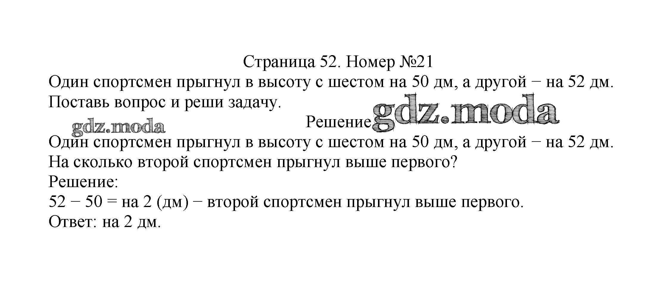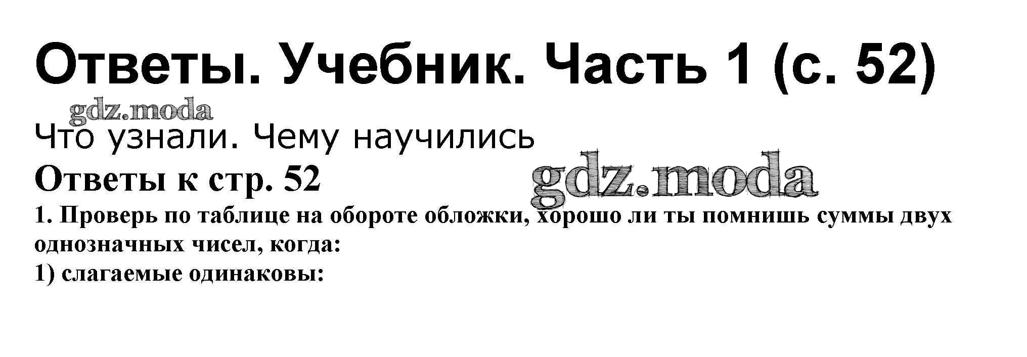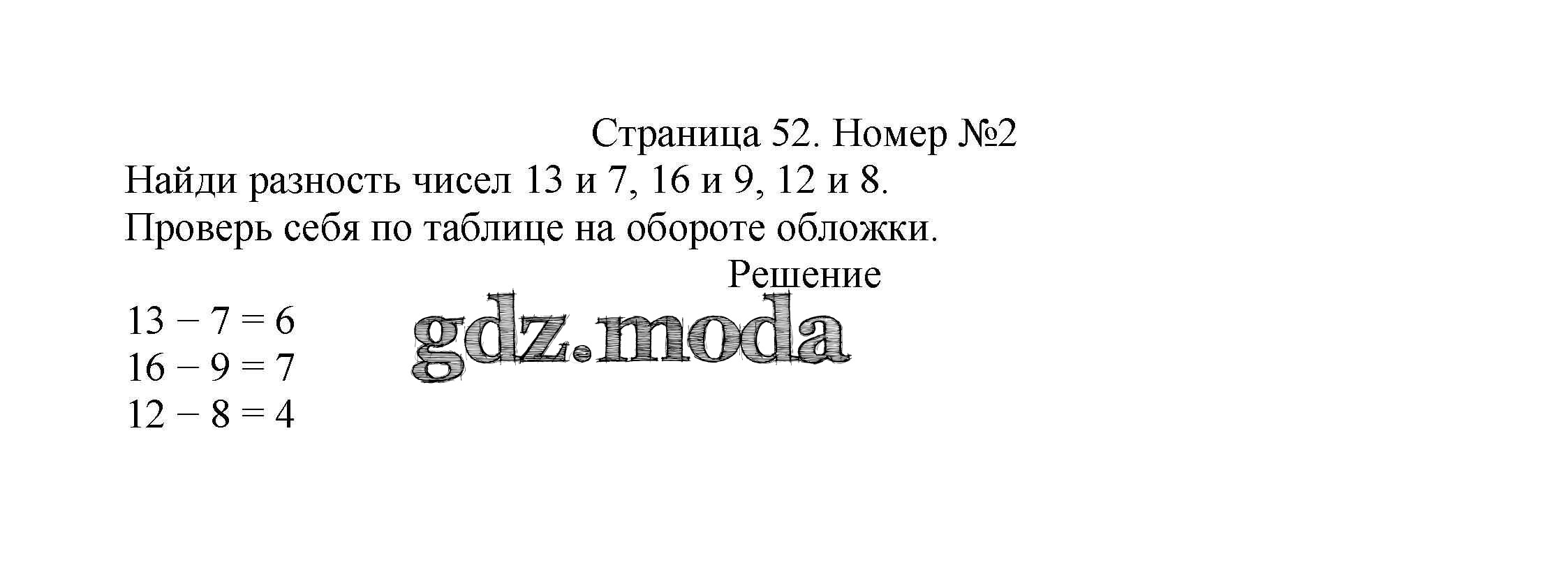 ОТВЕТ на задание № 52 Учебник по Математике 2 класс Моро Школа России